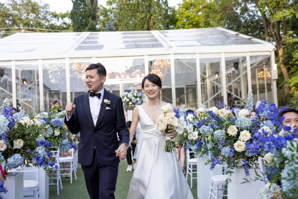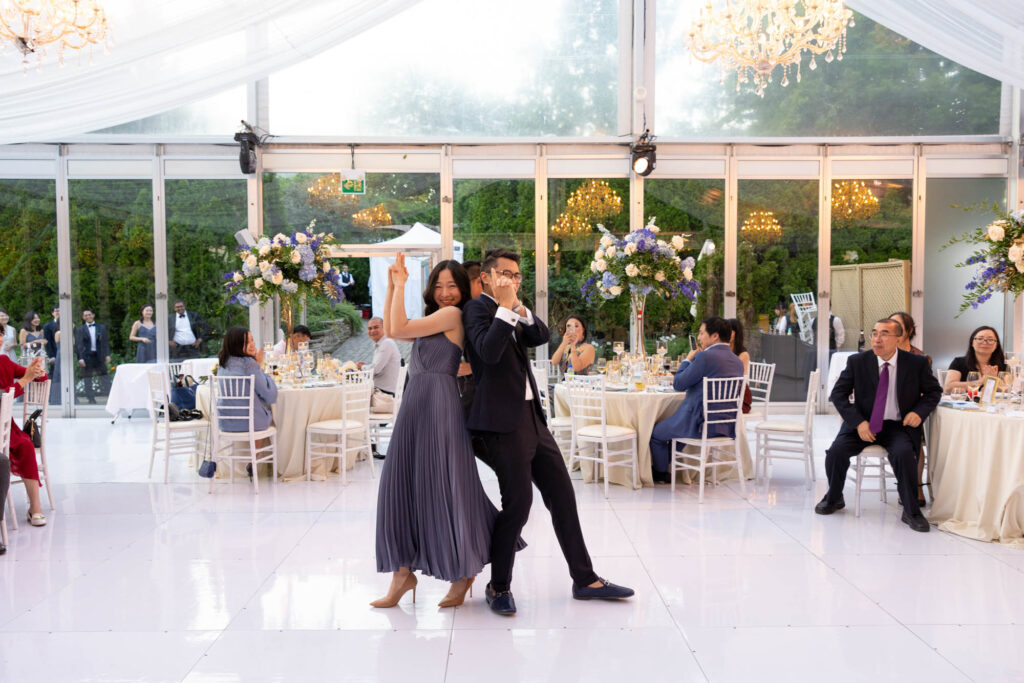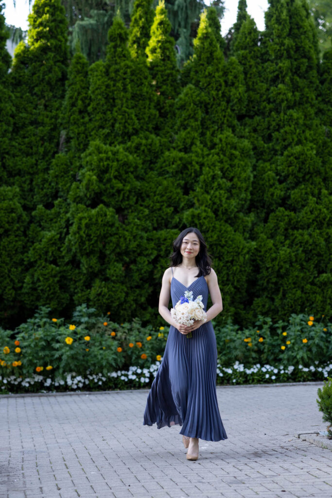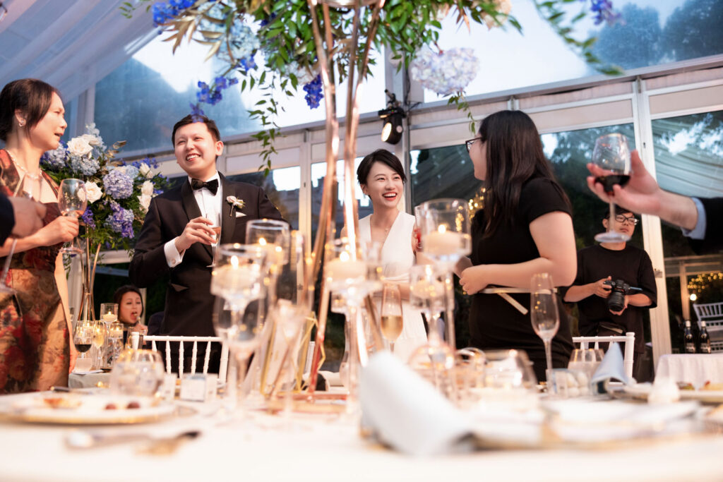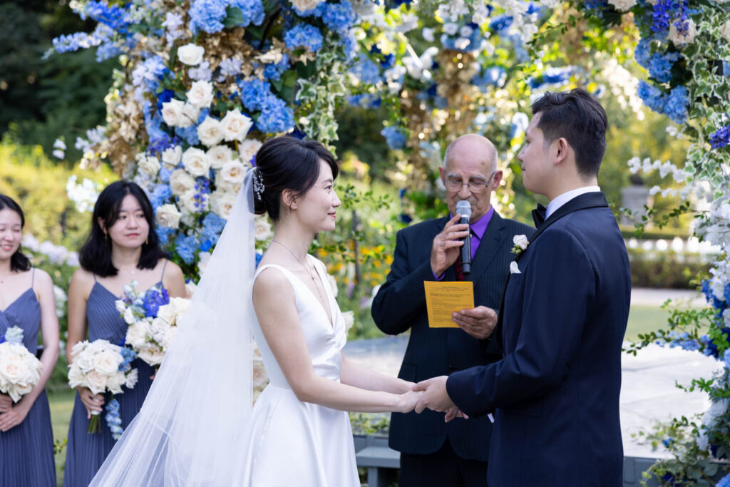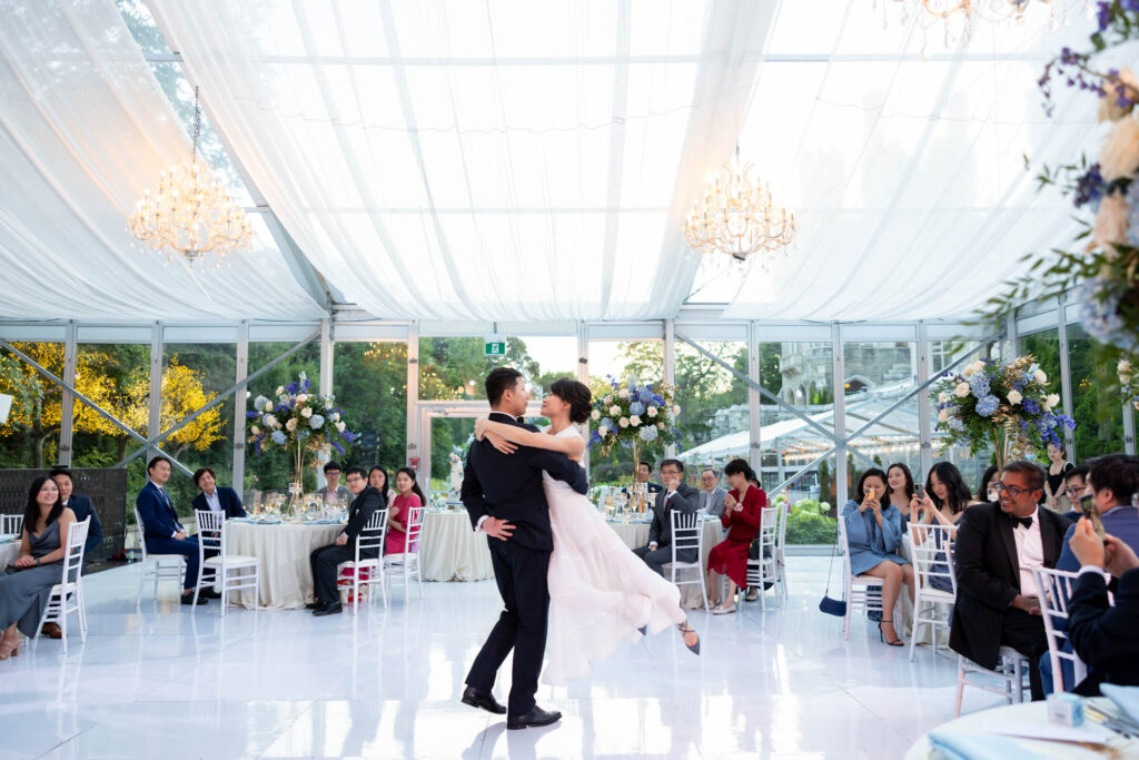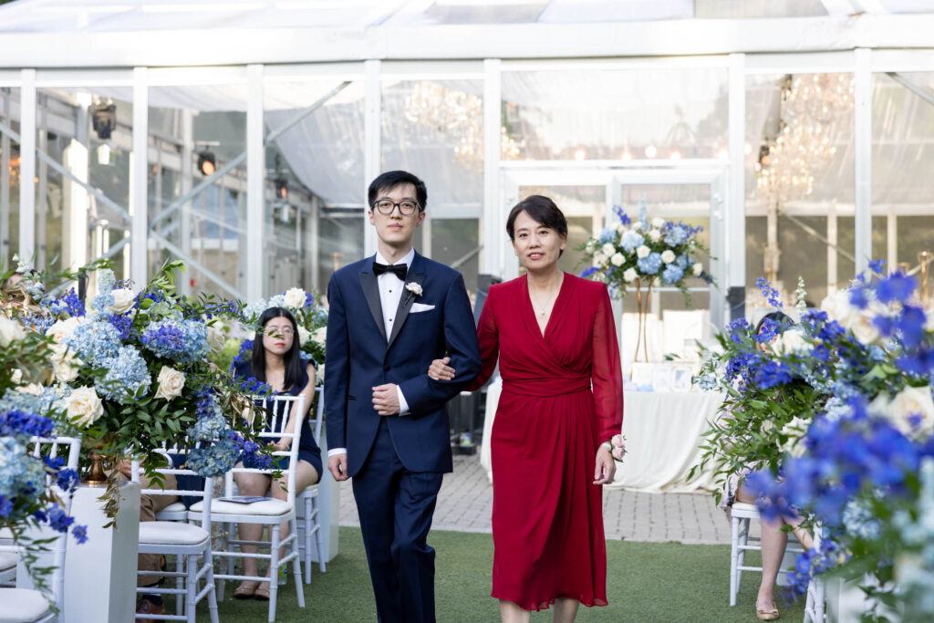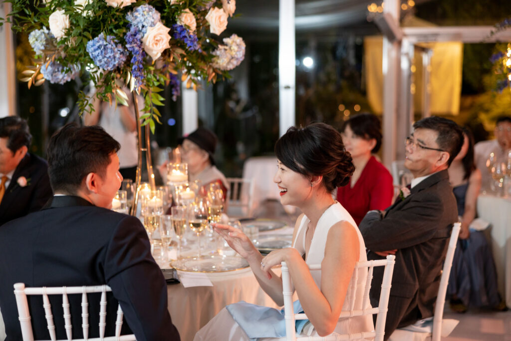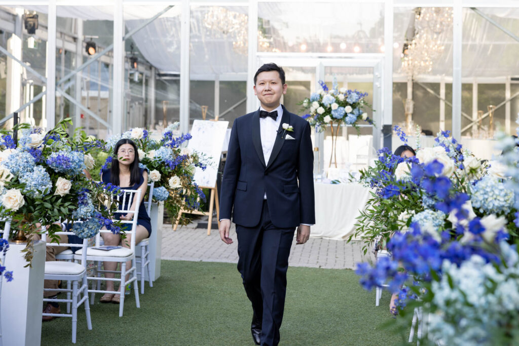 The wedding’s color palette was a dreamy combination of soft blues and purples, creating a romantic and elegant atmosphere. These colors were beautifully incorporated into the floral arrangements, table settings, and even the bridal party’s attire. The castle’s garden was transformed into a floral wonderland, with delicate blooms adding a touch of natural beauty to the historic venue. Casa Loma, with its grand architecture and lush gardens, was the perfect choice for Siyu and Alex’s wedding. The ceremony took place in the castle’s picturesque courtyard, surrounded by blooming flowers and the soft glow of natural light. As the sun set, the reception moved to a stunning transparent tent in the castle’s backyard, where the couple and their guests enjoyed an unforgettable evening under the stars. As night fell, the tent was illuminated by the warm glow of candlelight, creating a magical and intimate atmosphere. The reception was filled with heartfelt speeches from loved ones, each one bringing tears of joy and laughter. The combination of twinkling lights, soft music, and the castle’s historic charm made for a truly enchanting evening.