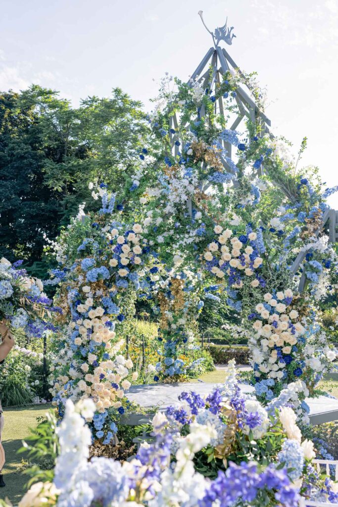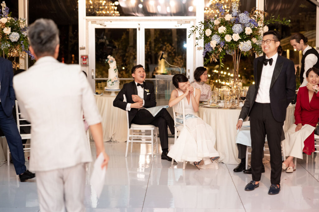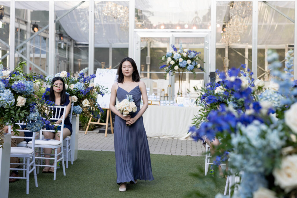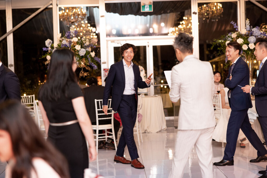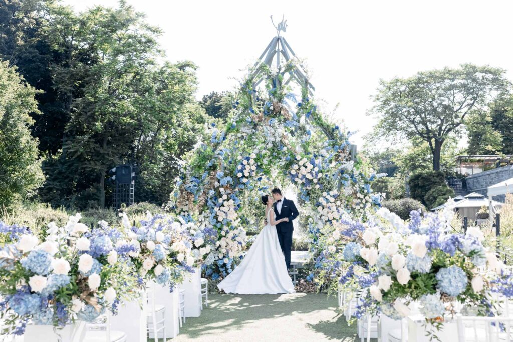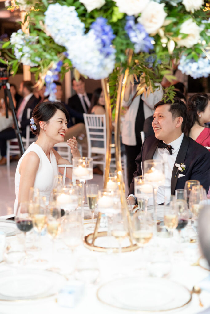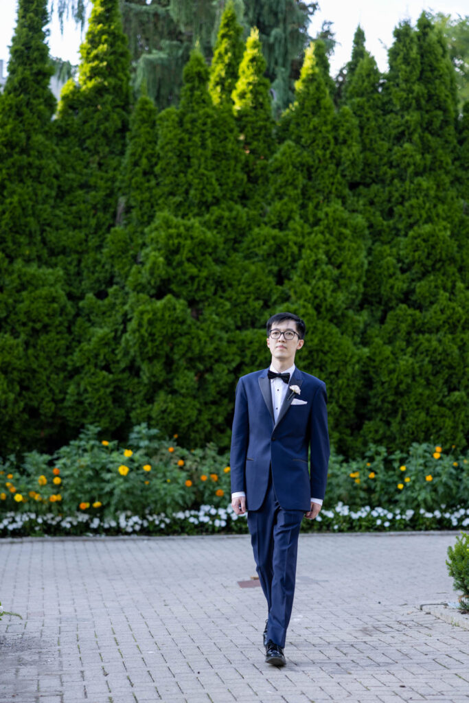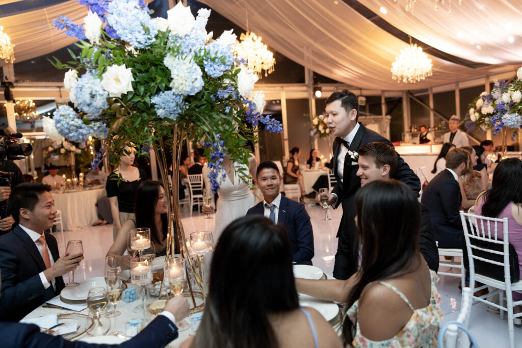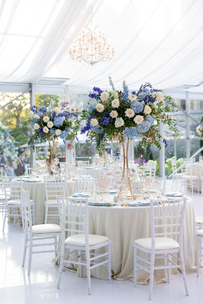 The wedding’s color palette was a dreamy combination of soft blues and purples, creating a romantic and elegant atmosphere. These colors were beautifully incorporated into the floral arrangements, table settings, and even the bridal party’s attire. The castle’s garden was transformed into a floral wonderland, with delicate blooms adding a touch of natural beauty to the historic venue. Casa Loma, with its grand architecture and lush gardens, was the perfect choice for Siyu and Alex’s wedding. The ceremony took place in the castle’s picturesque courtyard, surrounded by blooming flowers and the soft glow of natural light. As the sun set, the reception moved to a stunning transparent tent in the castle’s backyard, where the couple and their guests enjoyed an unforgettable evening under the stars. As night fell, the tent was illuminated by the warm glow of candlelight, creating a magical and intimate atmosphere. The reception was filled with heartfelt speeches from loved ones, each one bringing tears of joy and laughter. The combination of twinkling lights, soft music, and the castle’s historic charm made for a truly enchanting evening.