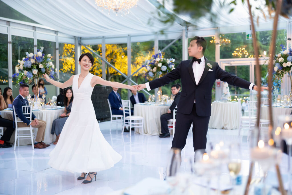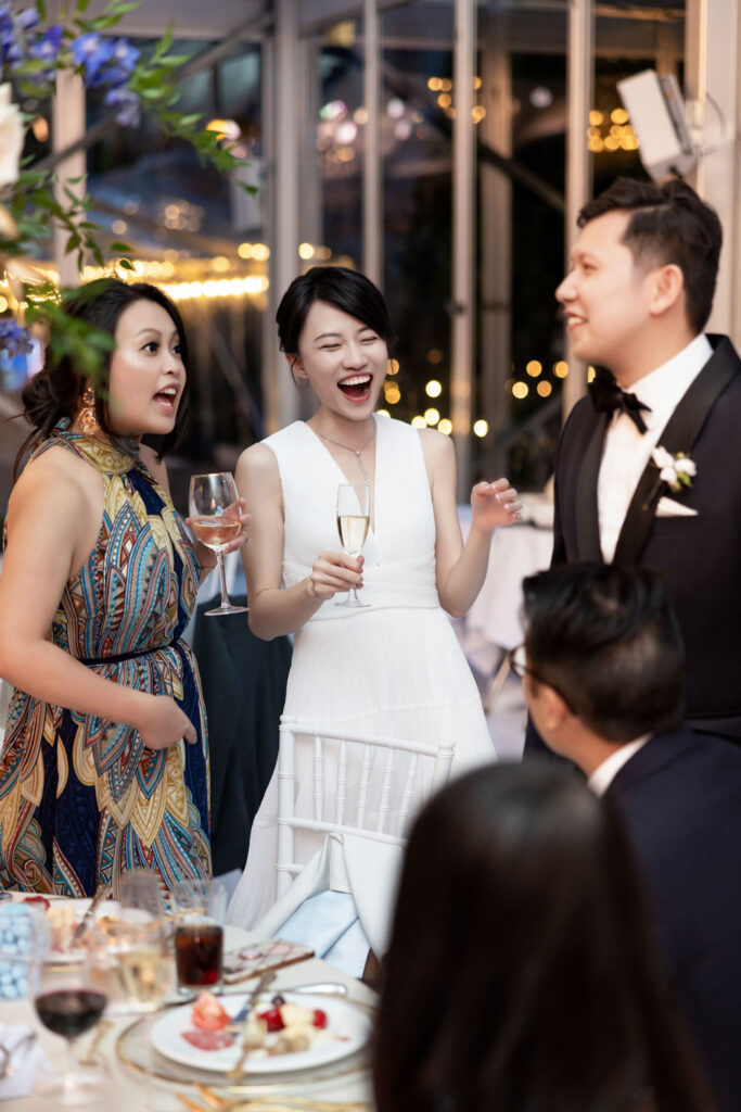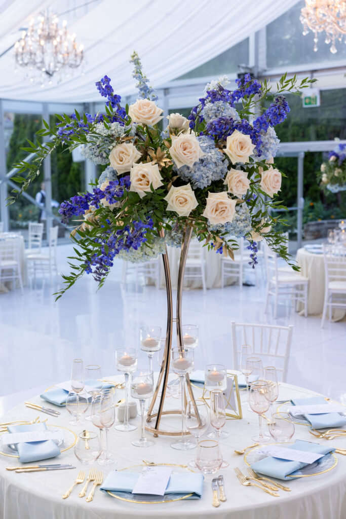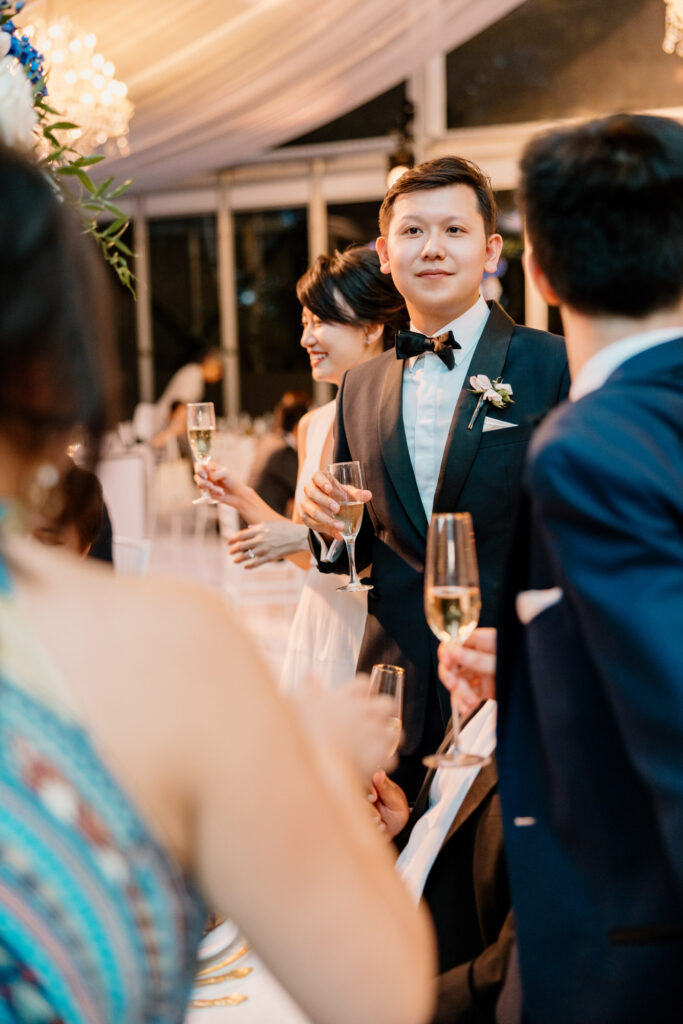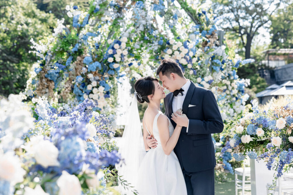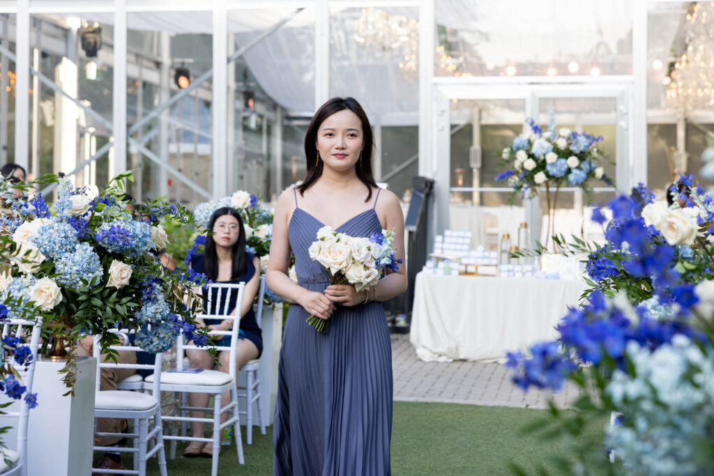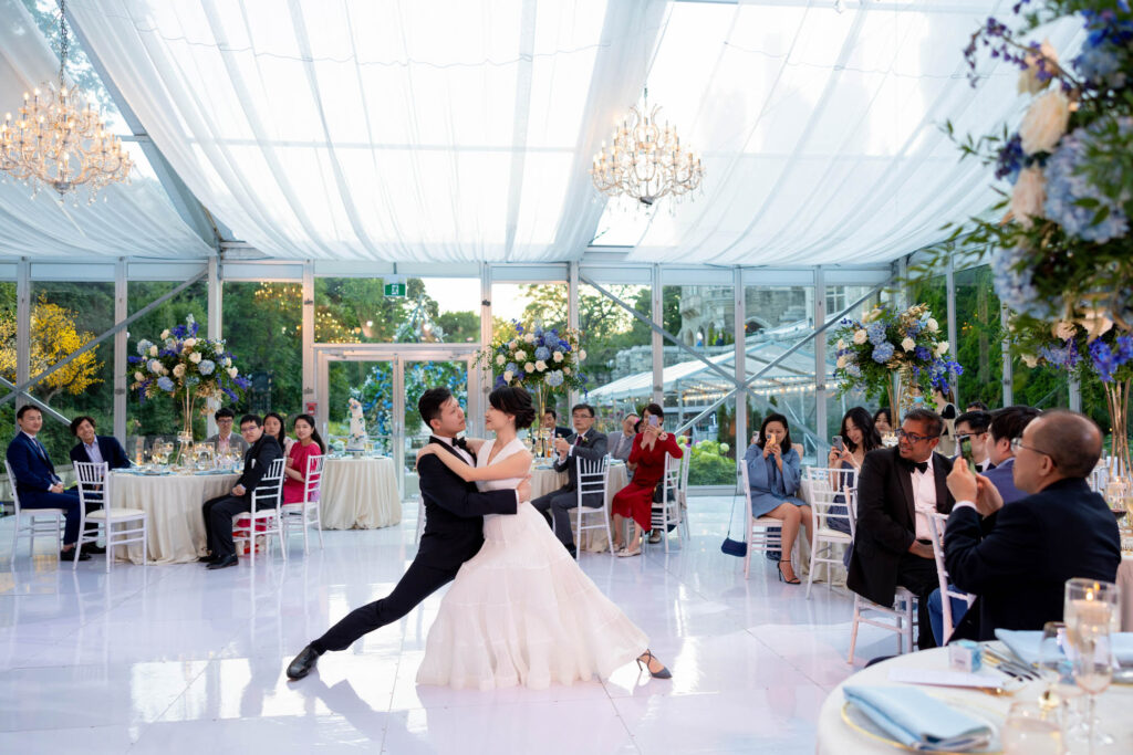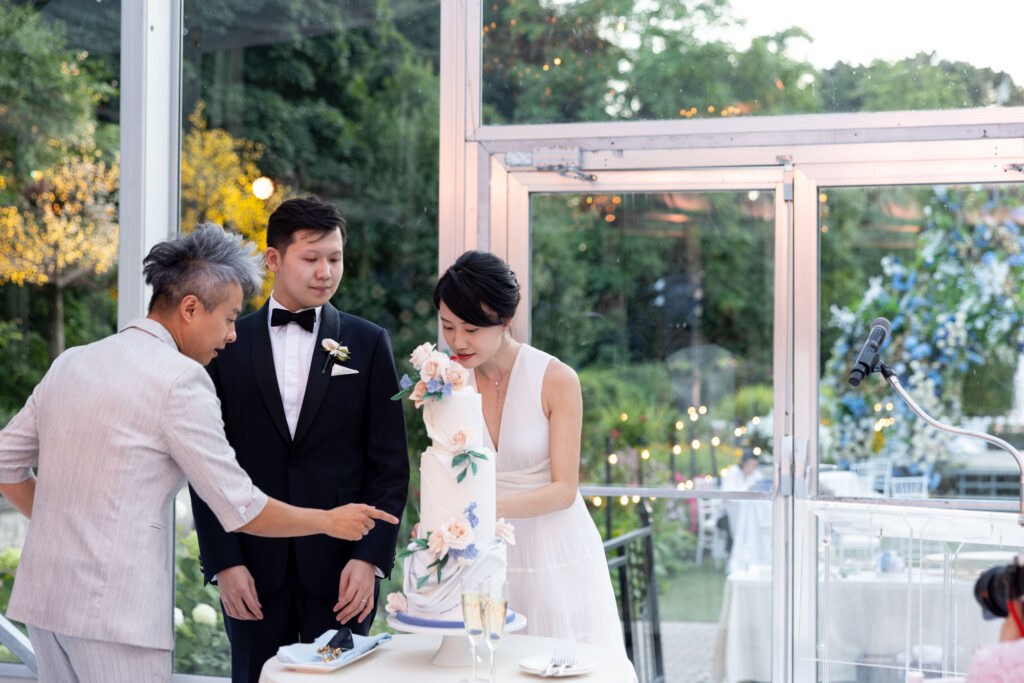 The wedding’s color palette was a dreamy combination of soft blues and purples, creating a romantic and elegant atmosphere. These colors were beautifully incorporated into the floral arrangements, table settings, and even the bridal party’s attire. The castle’s garden was transformed into a floral wonderland, with delicate blooms adding a touch of natural beauty to the historic venue. Casa Loma, with its grand architecture and lush gardens, was the perfect choice for Siyu and Alex’s wedding. The ceremony took place in the castle’s picturesque courtyard, surrounded by blooming flowers and the soft glow of natural light. As the sun set, the reception moved to a stunning transparent tent in the castle’s backyard, where the couple and their guests enjoyed an unforgettable evening under the stars. As night fell, the tent was illuminated by the warm glow of candlelight, creating a magical and intimate atmosphere. The reception was filled with heartfelt speeches from loved ones, each one bringing tears of joy and laughter. The combination of twinkling lights, soft music, and the castle’s historic charm made for a truly enchanting evening.