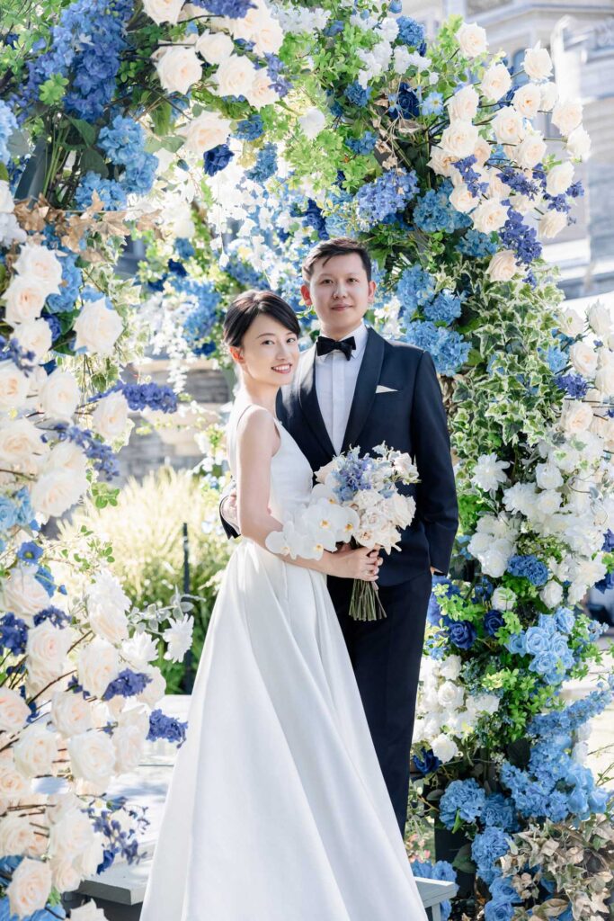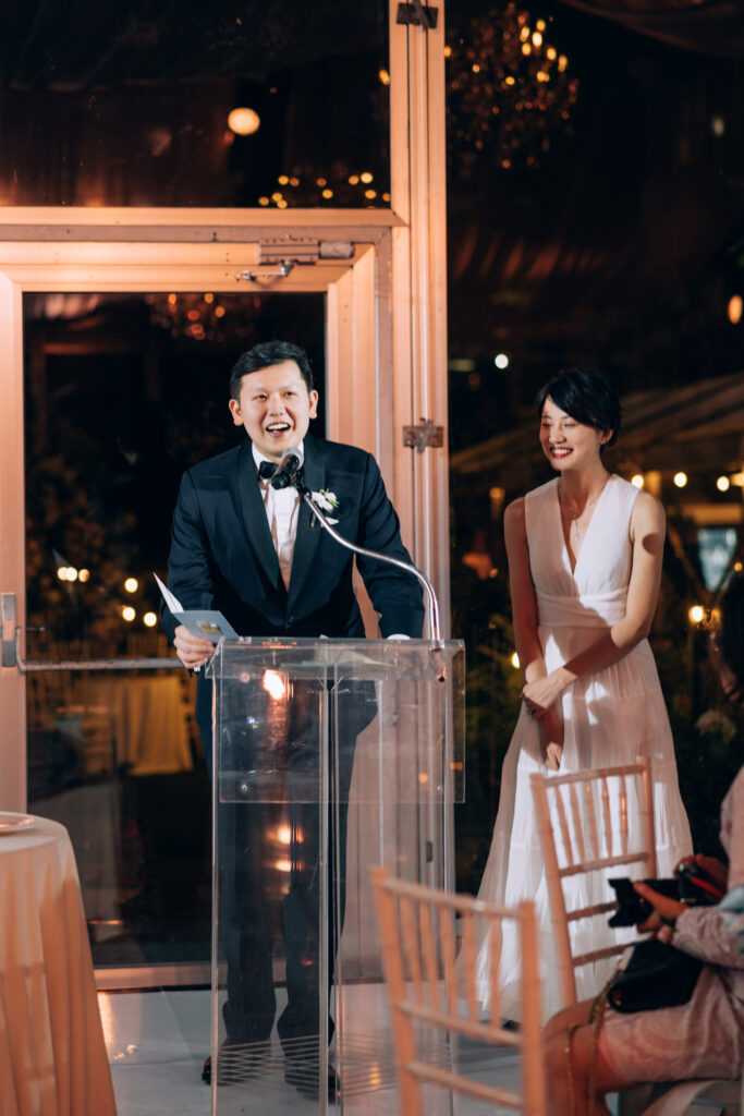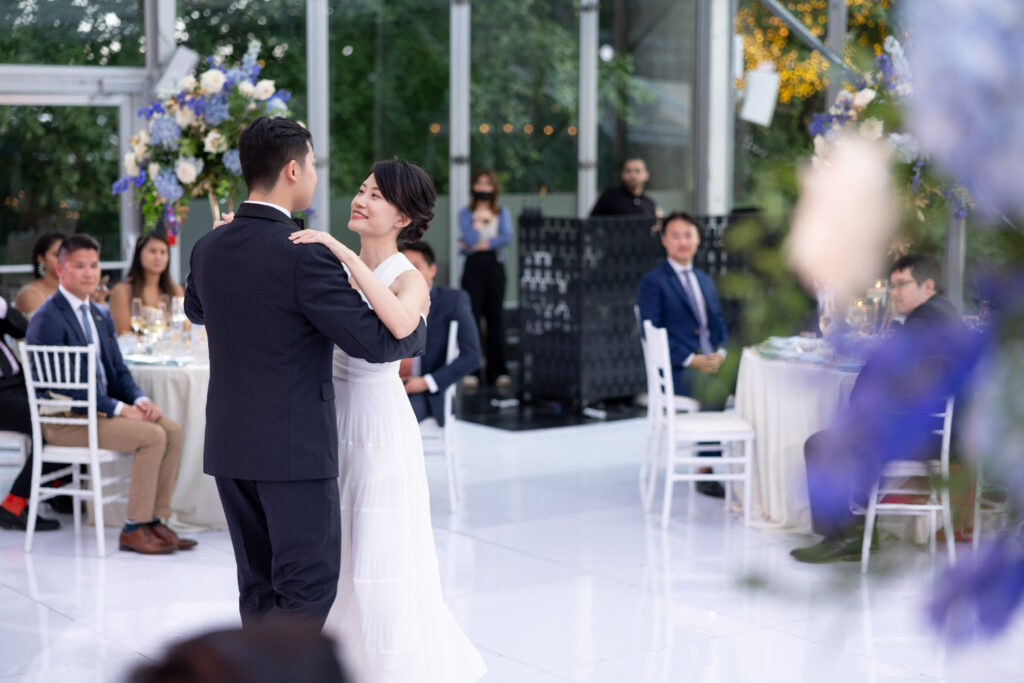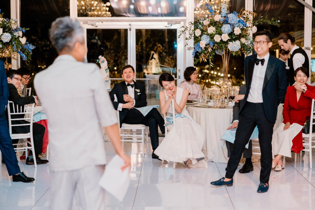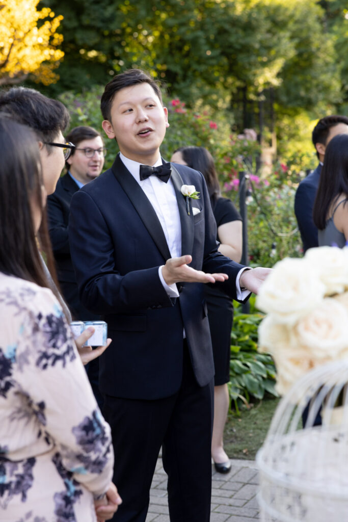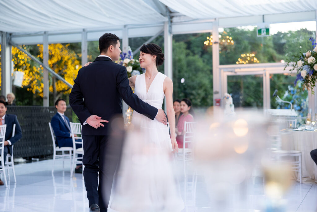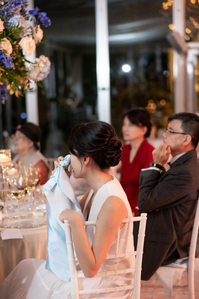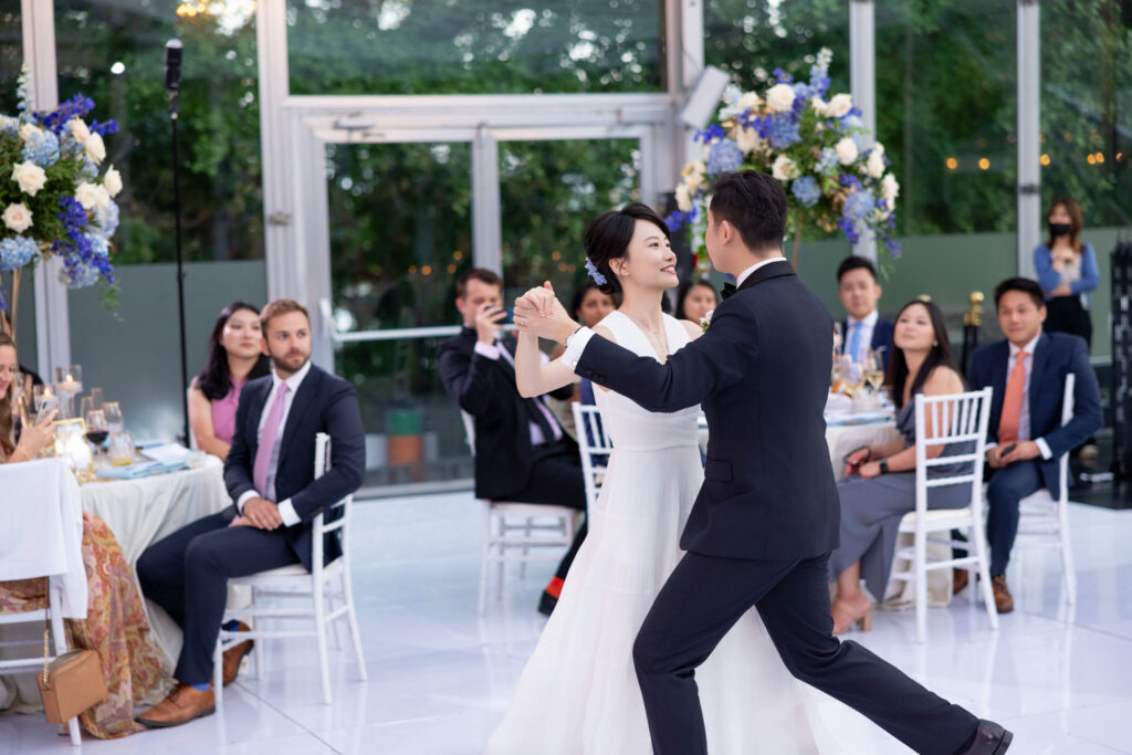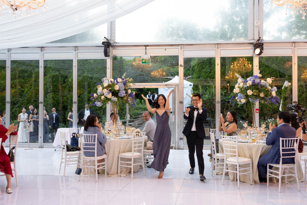 The wedding’s color palette was a dreamy combination of soft blues and purples, creating a romantic and elegant atmosphere. These colors were beautifully incorporated into the floral arrangements, table settings, and even the bridal party’s attire. The castle’s garden was transformed into a floral wonderland, with delicate blooms adding a touch of natural beauty to the historic venue. Casa Loma, with its grand architecture and lush gardens, was the perfect choice for Siyu and Alex’s wedding. The ceremony took place in the castle’s picturesque courtyard, surrounded by blooming flowers and the soft glow of natural light. As the sun set, the reception moved to a stunning transparent tent in the castle’s backyard, where the couple and their guests enjoyed an unforgettable evening under the stars. As night fell, the tent was illuminated by the warm glow of candlelight, creating a magical and intimate atmosphere. The reception was filled with heartfelt speeches from loved ones, each one bringing tears of joy and laughter. The combination of twinkling lights, soft music, and the castle’s historic charm made for a truly enchanting evening.