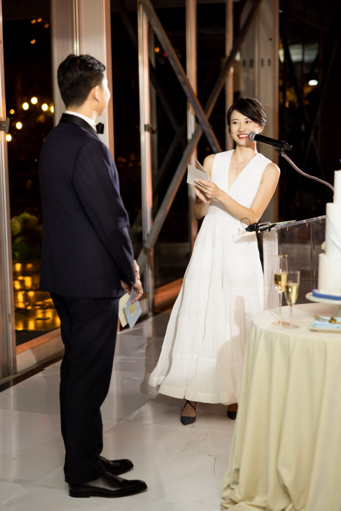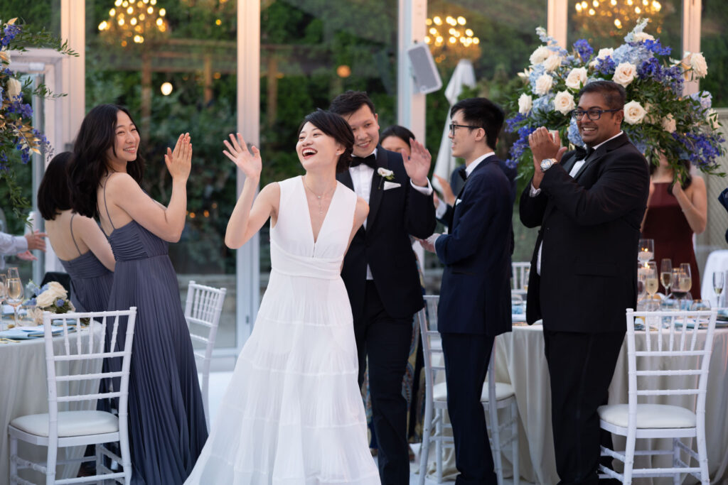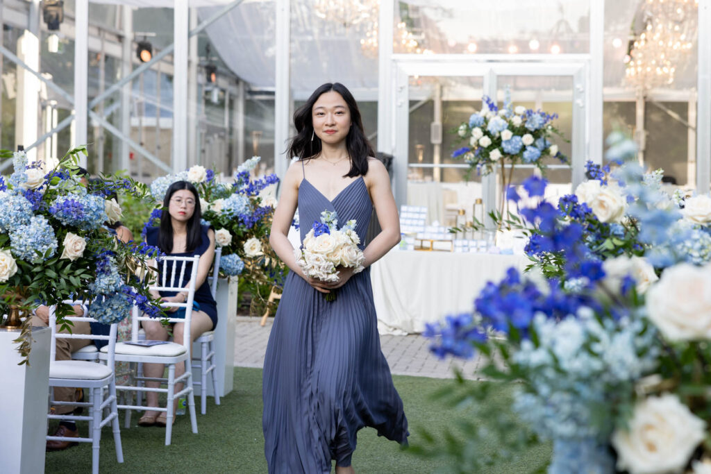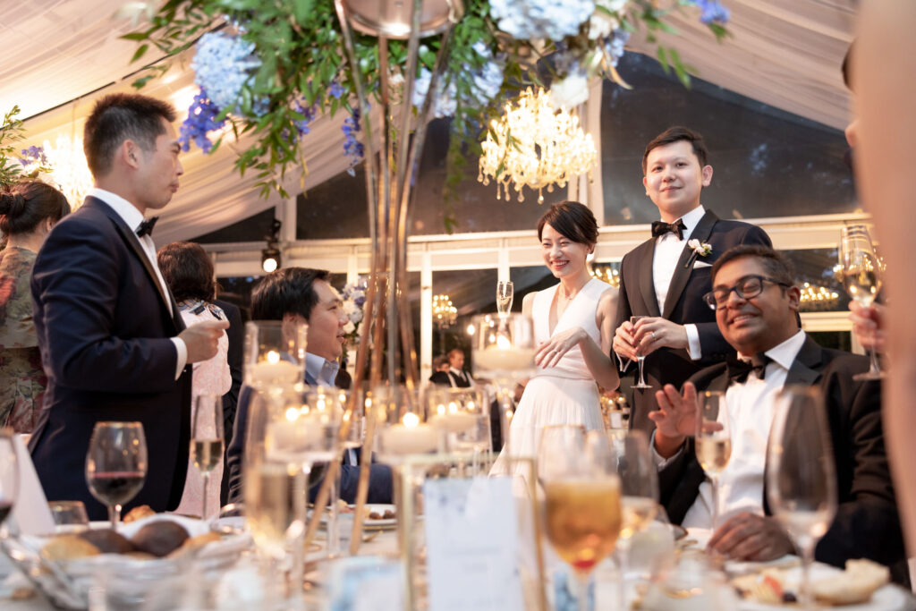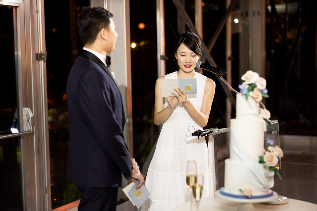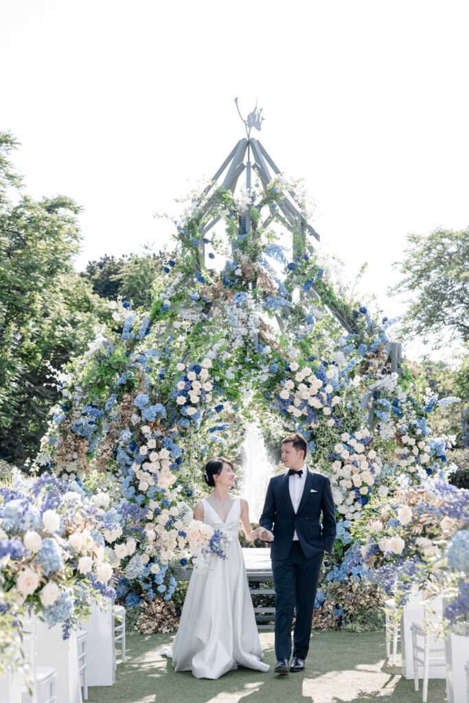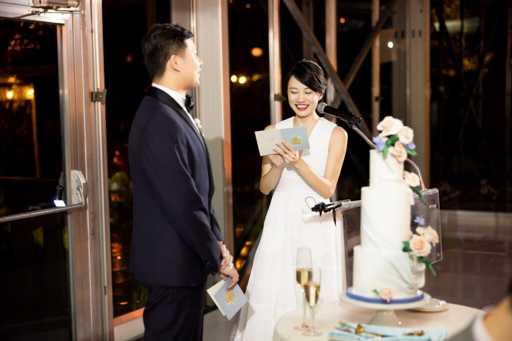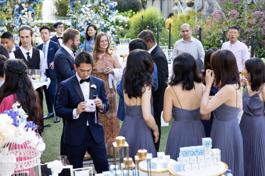 The wedding’s color palette was a dreamy combination of soft blues and purples, creating a romantic and elegant atmosphere. These colors were beautifully incorporated into the floral arrangements, table settings, and even the bridal party’s attire. The castle’s garden was transformed into a floral wonderland, with delicate blooms adding a touch of natural beauty to the historic venue. Casa Loma, with its grand architecture and lush gardens, was the perfect choice for Siyu and Alex’s wedding. The ceremony took place in the castle’s picturesque courtyard, surrounded by blooming flowers and the soft glow of natural light. As the sun set, the reception moved to a stunning transparent tent in the castle’s backyard, where the couple and their guests enjoyed an unforgettable evening under the stars. As night fell, the tent was illuminated by the warm glow of candlelight, creating a magical and intimate atmosphere. The reception was filled with heartfelt speeches from loved ones, each one bringing tears of joy and laughter. The combination of twinkling lights, soft music, and the castle’s historic charm made for a truly enchanting evening.