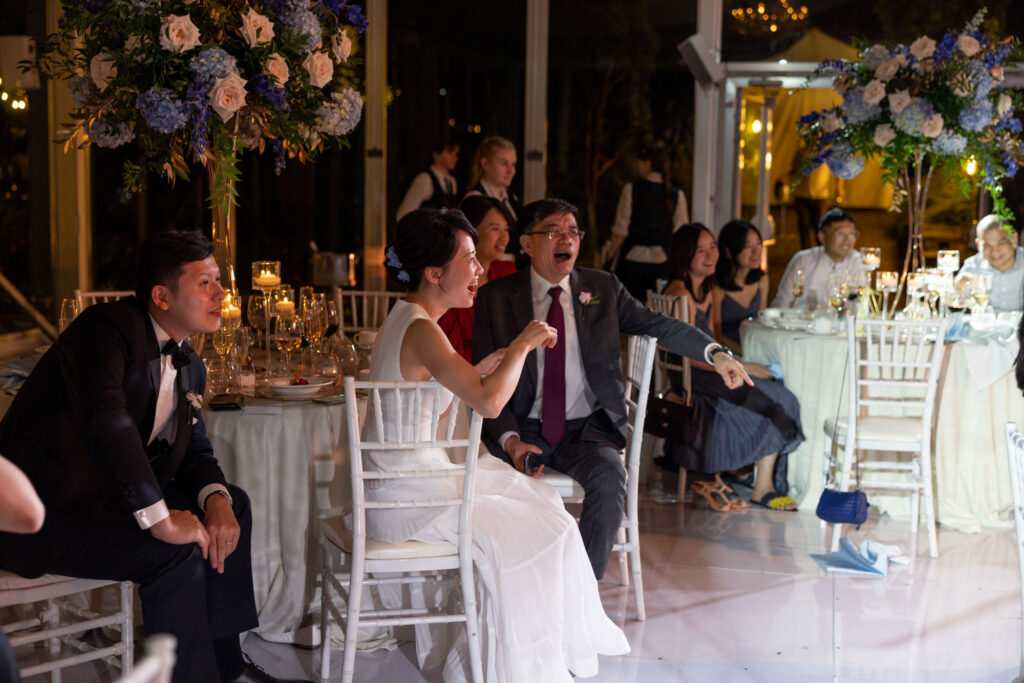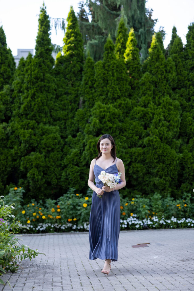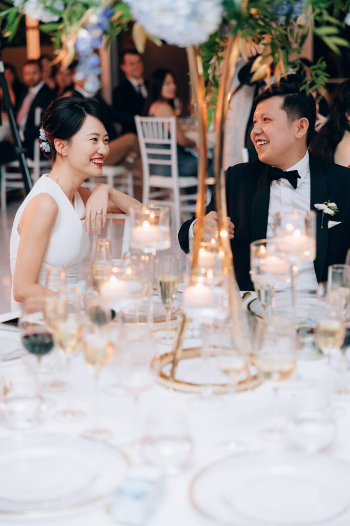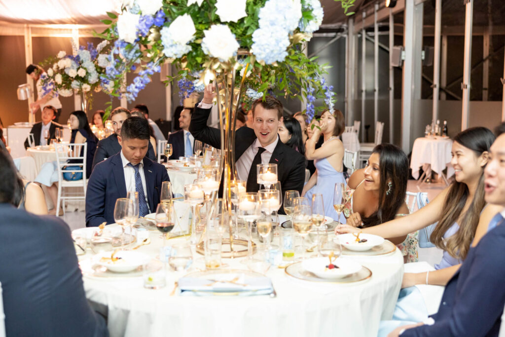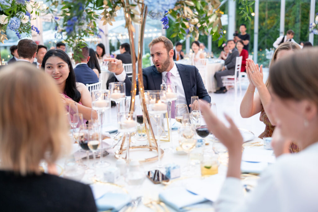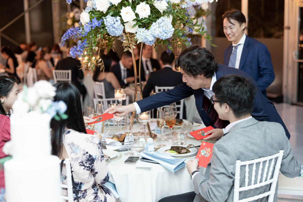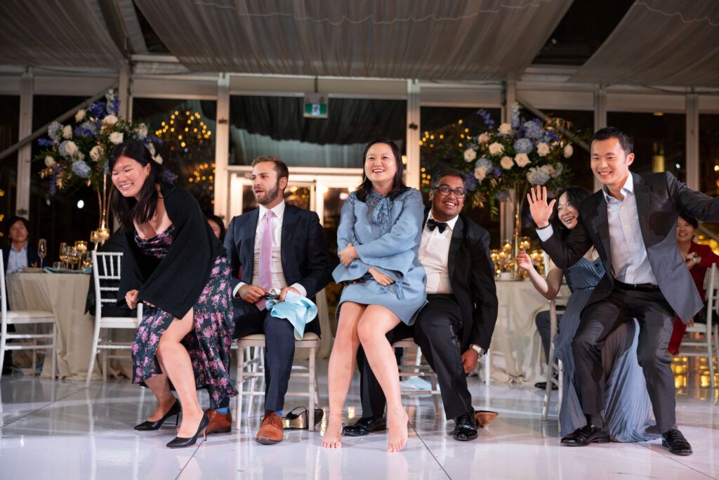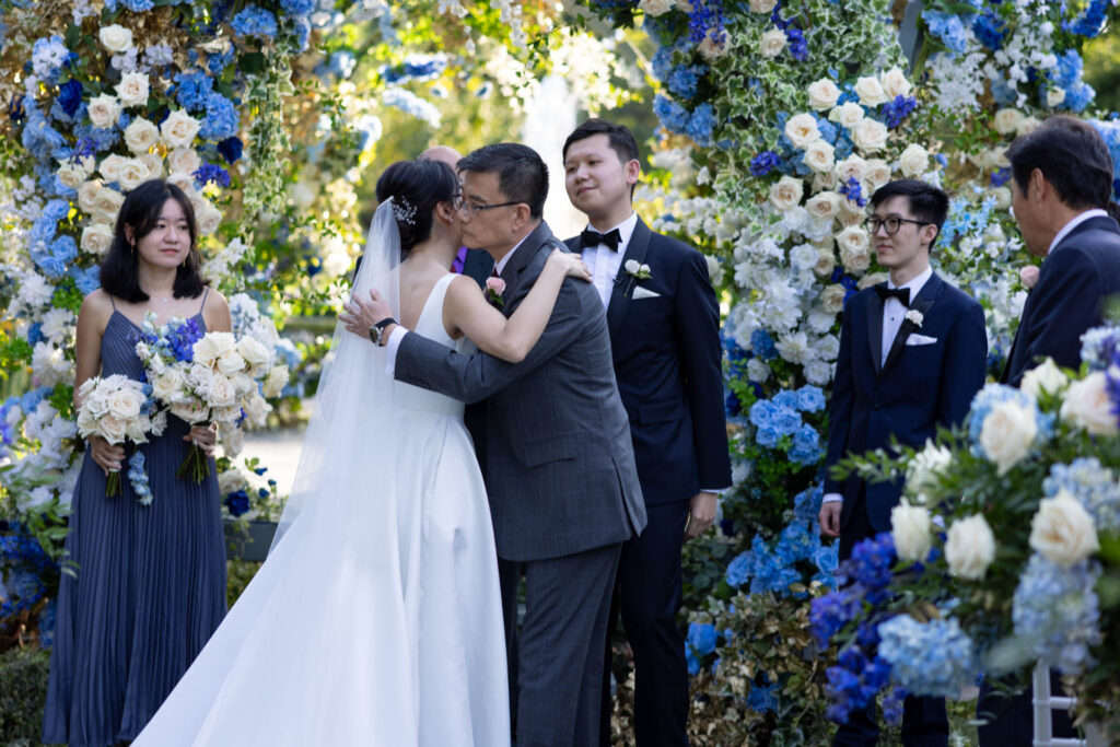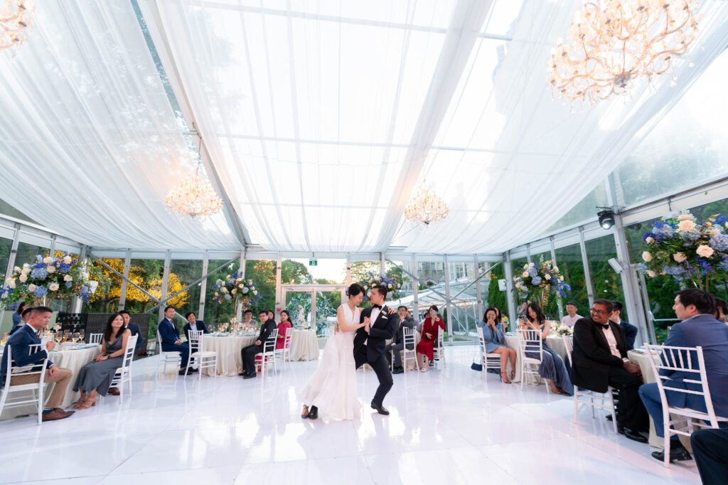 The wedding’s color palette was a dreamy combination of soft blues and purples, creating a romantic and elegant atmosphere. These colors were beautifully incorporated into the floral arrangements, table settings, and even the bridal party’s attire. The castle’s garden was transformed into a floral wonderland, with delicate blooms adding a touch of natural beauty to the historic venue. Casa Loma, with its grand architecture and lush gardens, was the perfect choice for Siyu and Alex’s wedding. The ceremony took place in the castle’s picturesque courtyard, surrounded by blooming flowers and the soft glow of natural light. As the sun set, the reception moved to a stunning transparent tent in the castle’s backyard, where the couple and their guests enjoyed an unforgettable evening under the stars. As night fell, the tent was illuminated by the warm glow of candlelight, creating a magical and intimate atmosphere. The reception was filled with heartfelt speeches from loved ones, each one bringing tears of joy and laughter. The combination of twinkling lights, soft music, and the castle’s historic charm made for a truly enchanting evening.