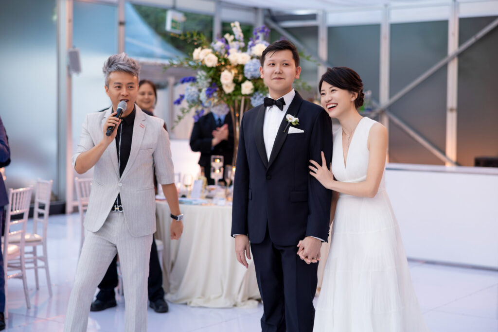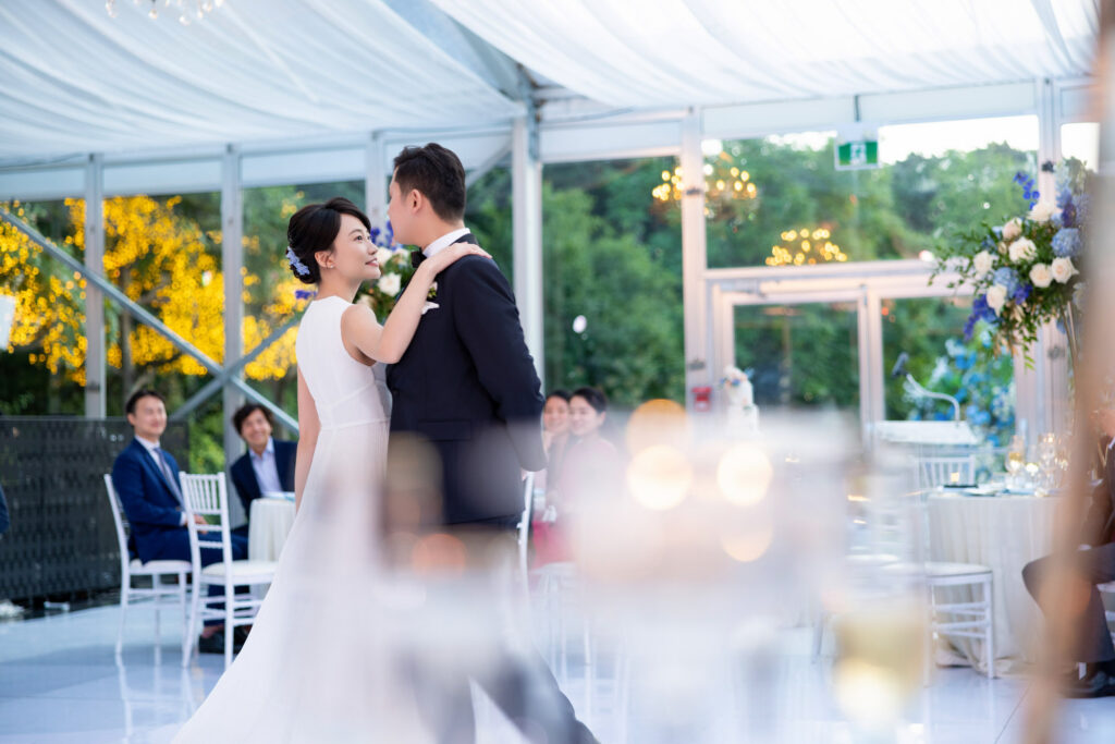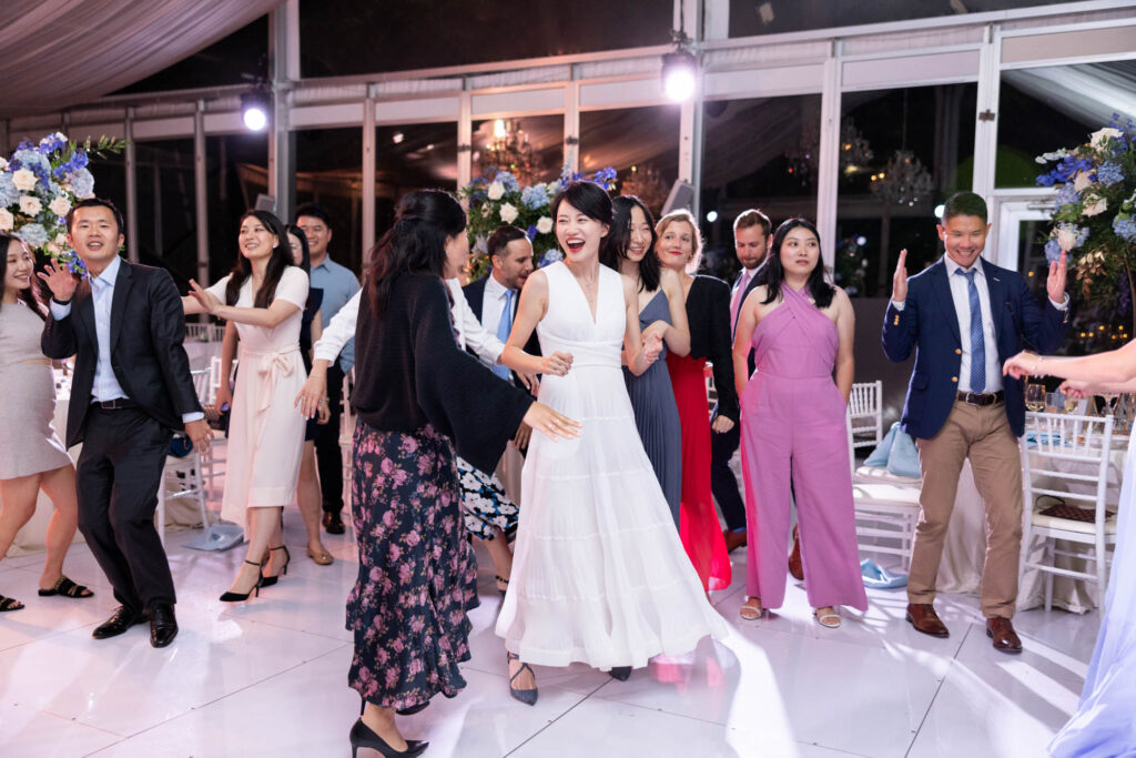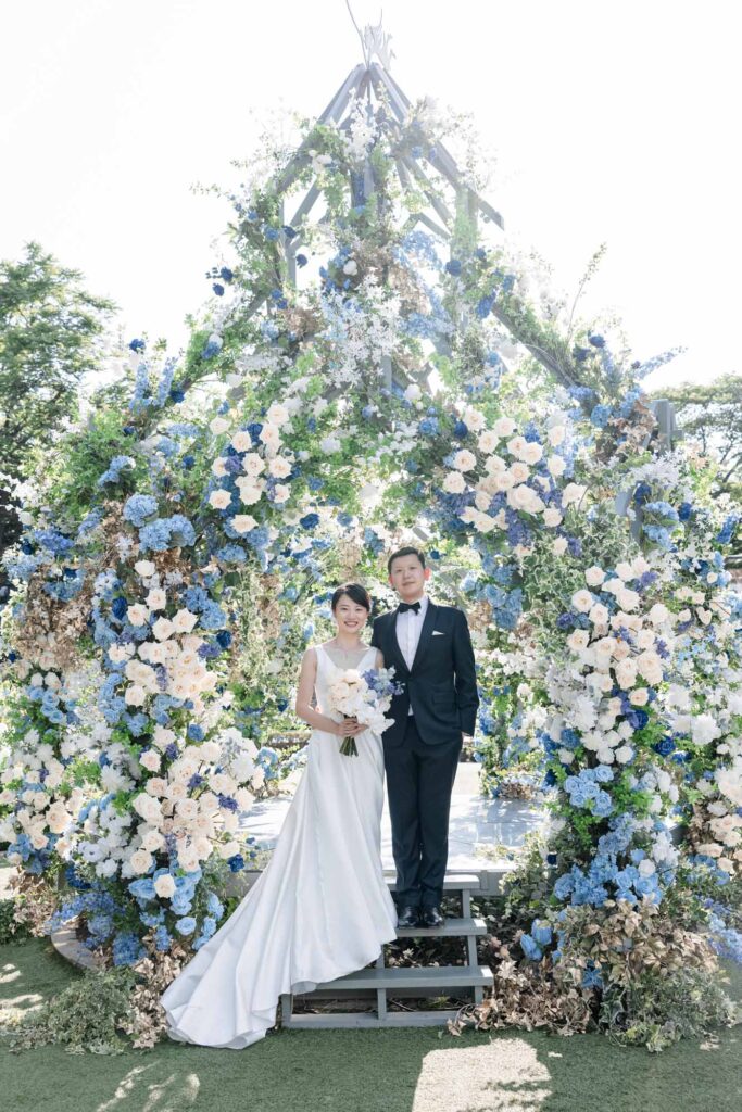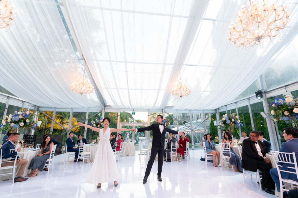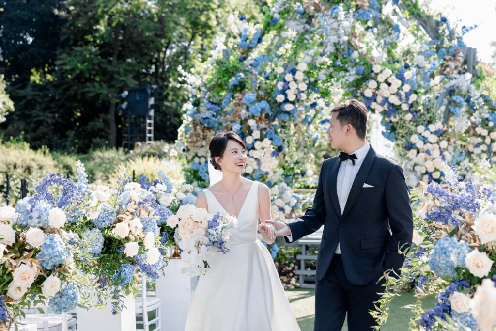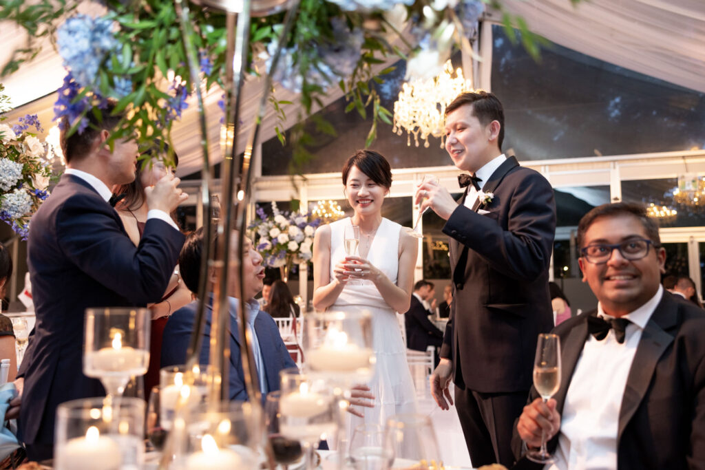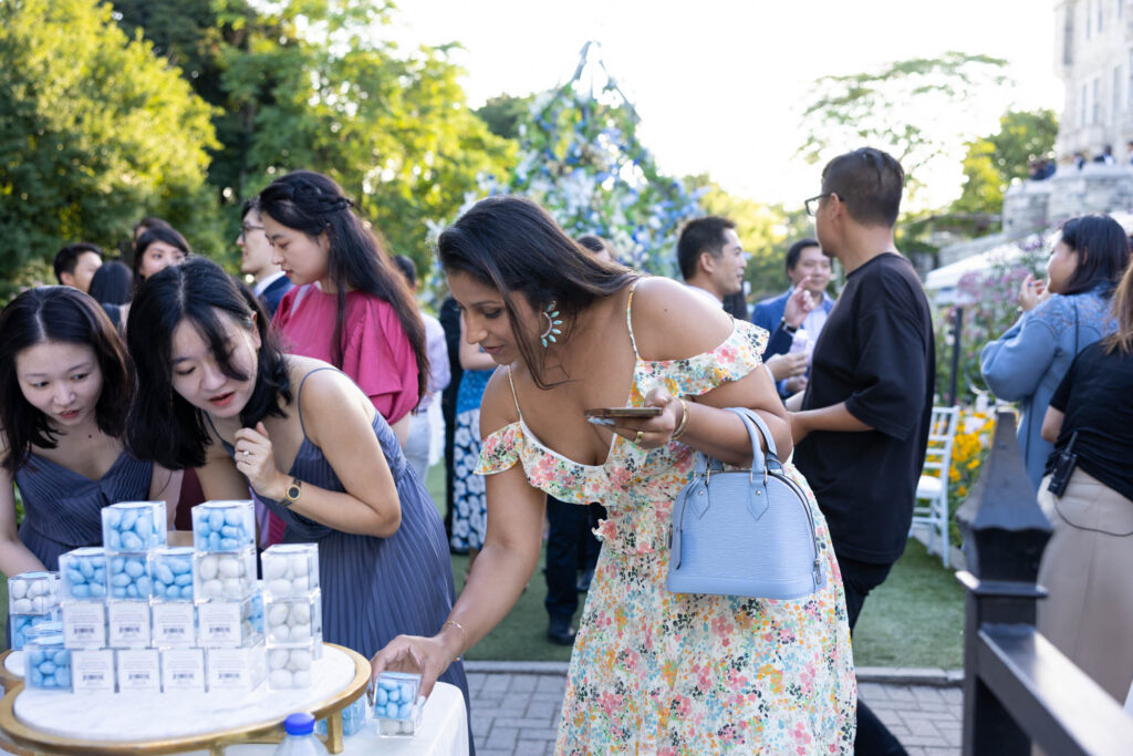 The wedding’s color palette was a dreamy combination of soft blues and purples, creating a romantic and elegant atmosphere. These colors were beautifully incorporated into the floral arrangements, table settings, and even the bridal party’s attire. The castle’s garden was transformed into a floral wonderland, with delicate blooms adding a touch of natural beauty to the historic venue. Casa Loma, with its grand architecture and lush gardens, was the perfect choice for Siyu and Alex’s wedding. The ceremony took place in the castle’s picturesque courtyard, surrounded by blooming flowers and the soft glow of natural light. As the sun set, the reception moved to a stunning transparent tent in the castle’s backyard, where the couple and their guests enjoyed an unforgettable evening under the stars. As night fell, the tent was illuminated by the warm glow of candlelight, creating a magical and intimate atmosphere. The reception was filled with heartfelt speeches from loved ones, each one bringing tears of joy and laughter. The combination of twinkling lights, soft music, and the castle’s historic charm made for a truly enchanting evening.