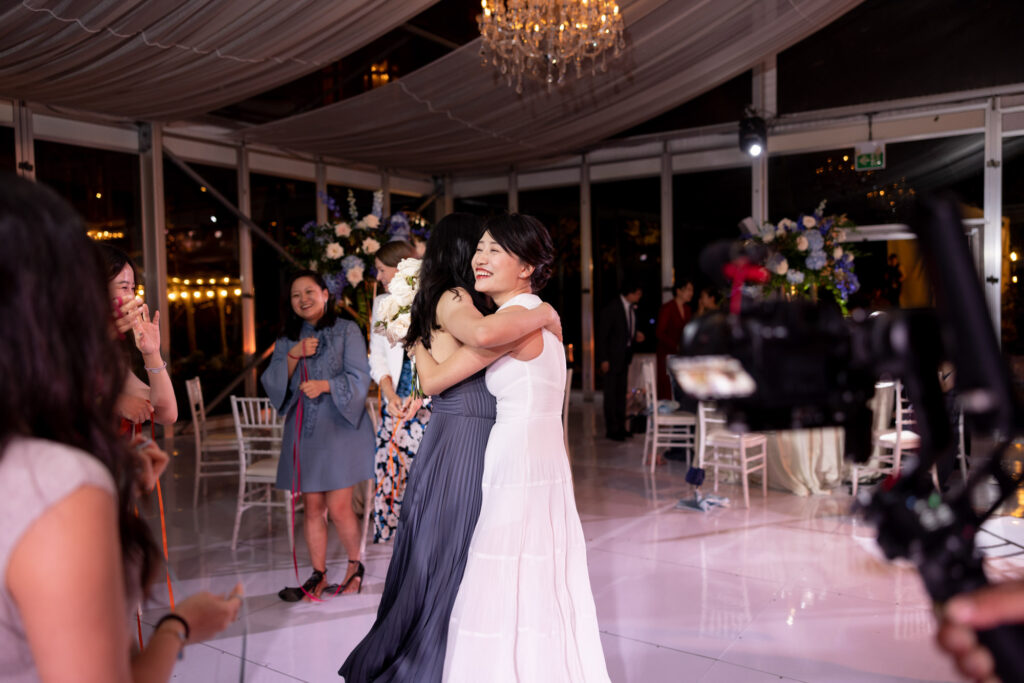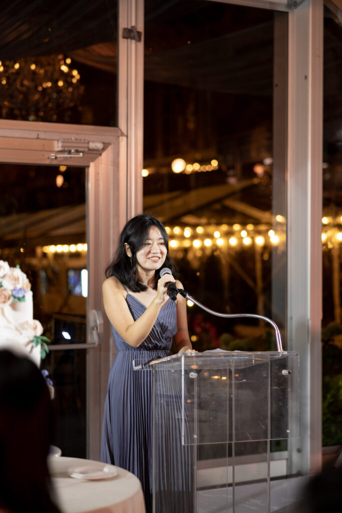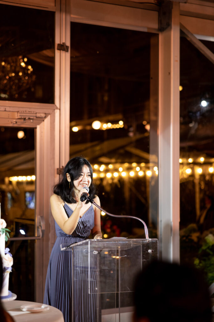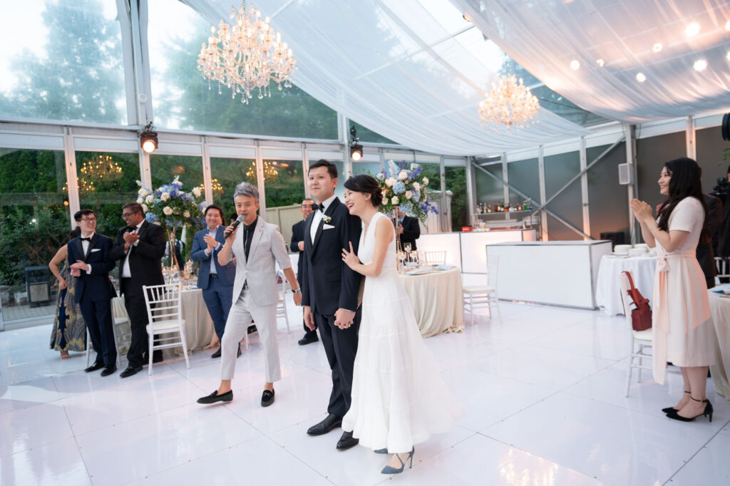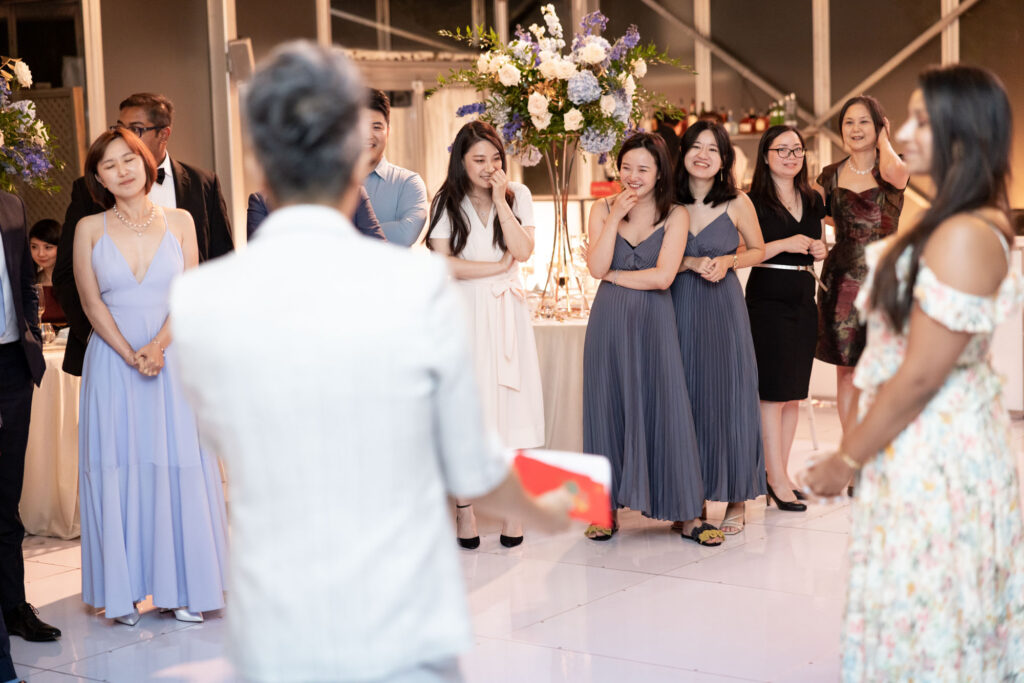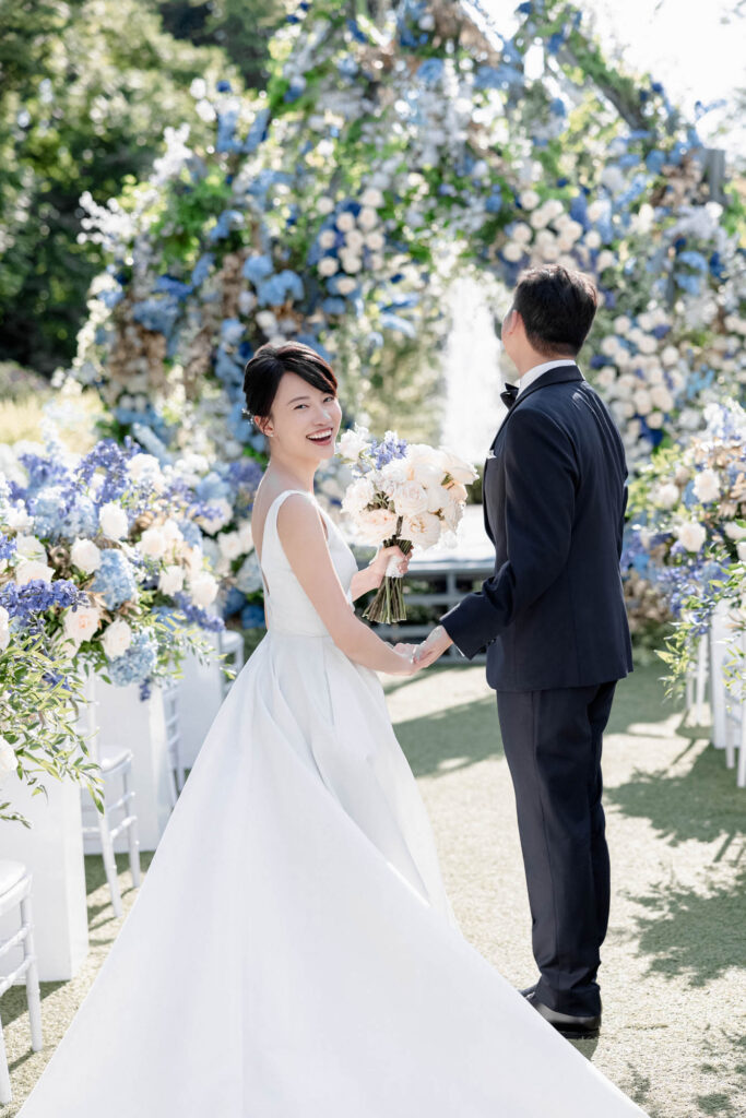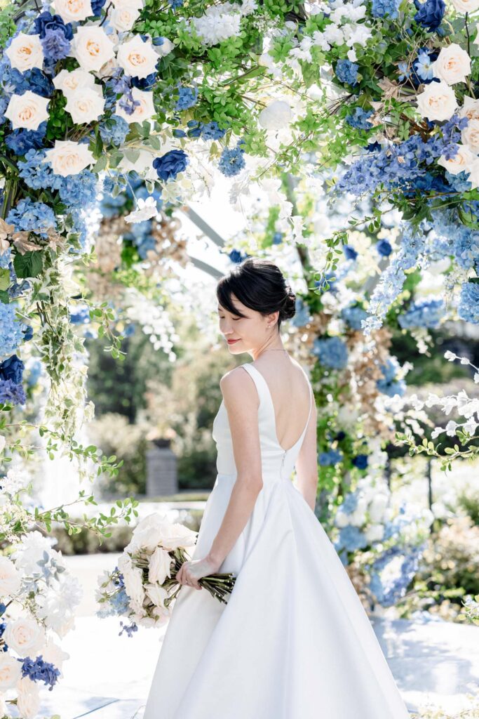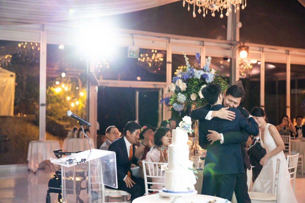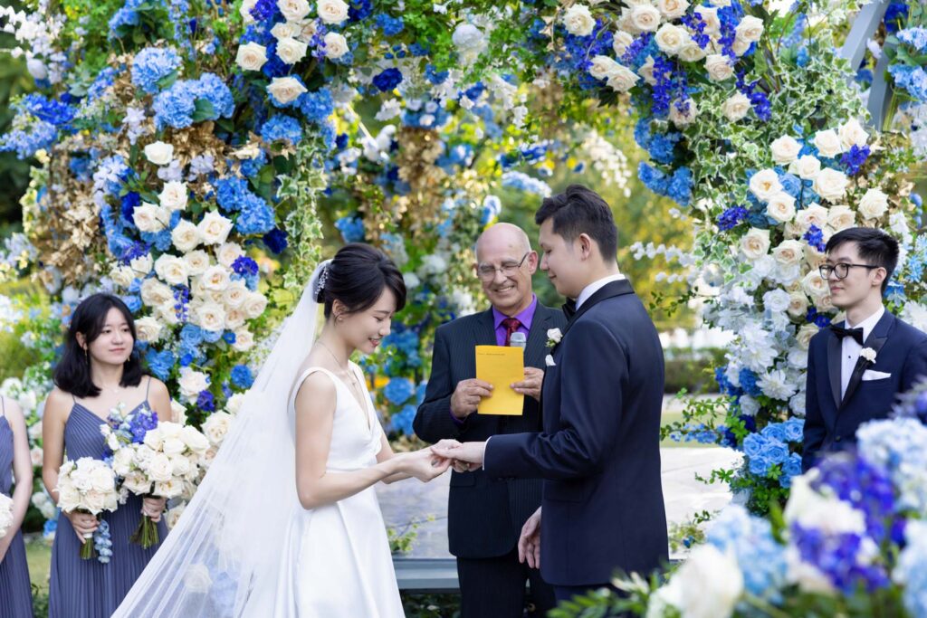 The wedding’s color palette was a dreamy combination of soft blues and purples, creating a romantic and elegant atmosphere. These colors were beautifully incorporated into the floral arrangements, table settings, and even the bridal party’s attire. The castle’s garden was transformed into a floral wonderland, with delicate blooms adding a touch of natural beauty to the historic venue. Casa Loma, with its grand architecture and lush gardens, was the perfect choice for Siyu and Alex’s wedding. The ceremony took place in the castle’s picturesque courtyard, surrounded by blooming flowers and the soft glow of natural light. As the sun set, the reception moved to a stunning transparent tent in the castle’s backyard, where the couple and their guests enjoyed an unforgettable evening under the stars. As night fell, the tent was illuminated by the warm glow of candlelight, creating a magical and intimate atmosphere. The reception was filled with heartfelt speeches from loved ones, each one bringing tears of joy and laughter. The combination of twinkling lights, soft music, and the castle’s historic charm made for a truly enchanting evening.