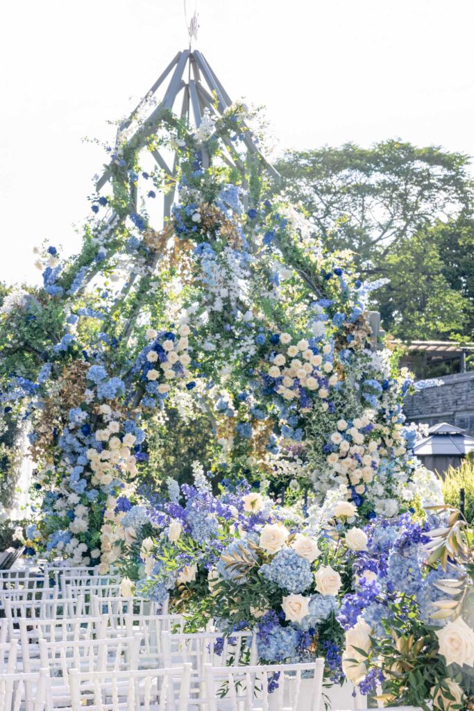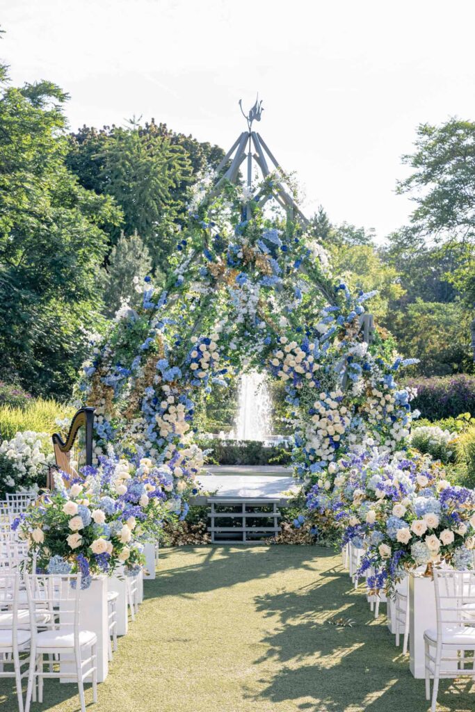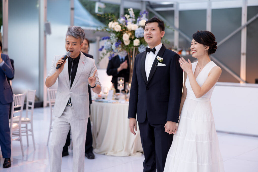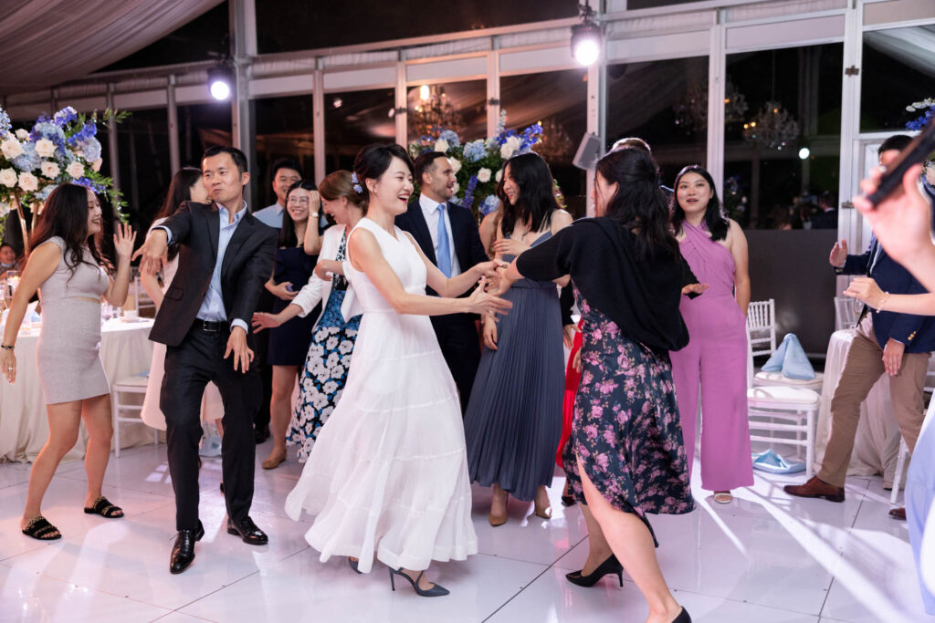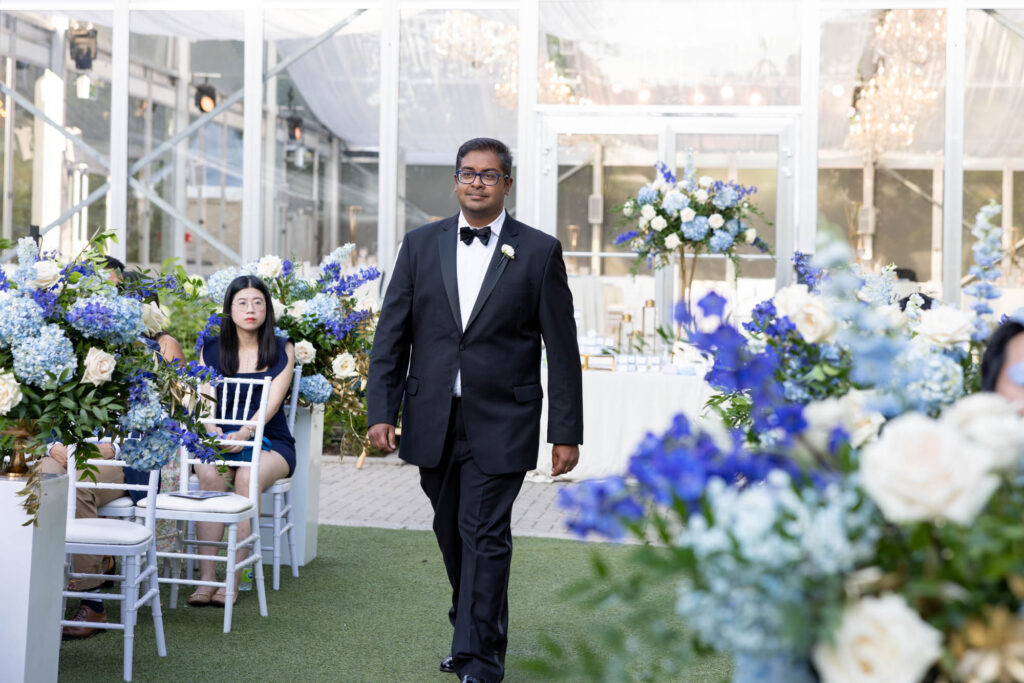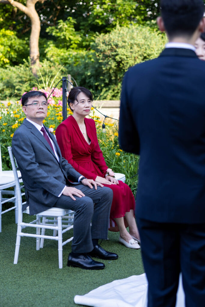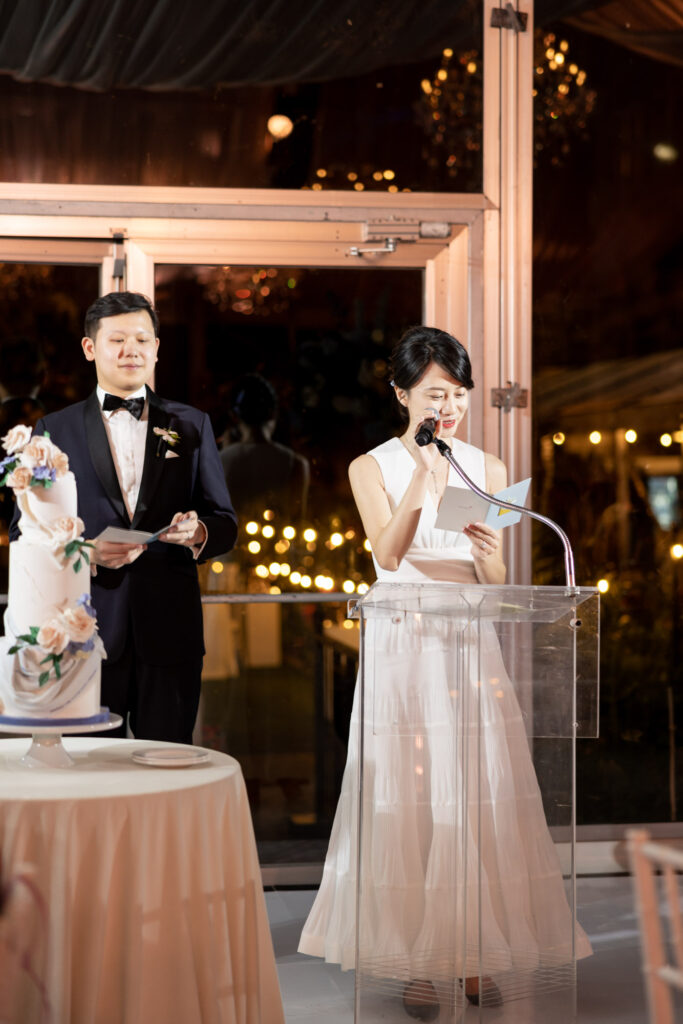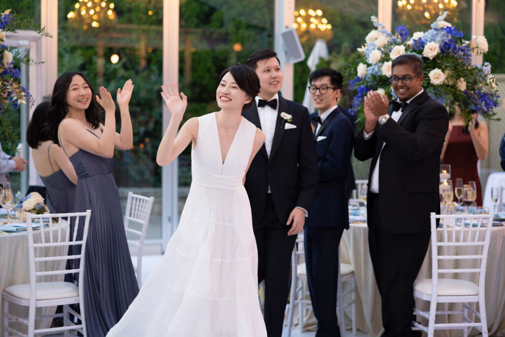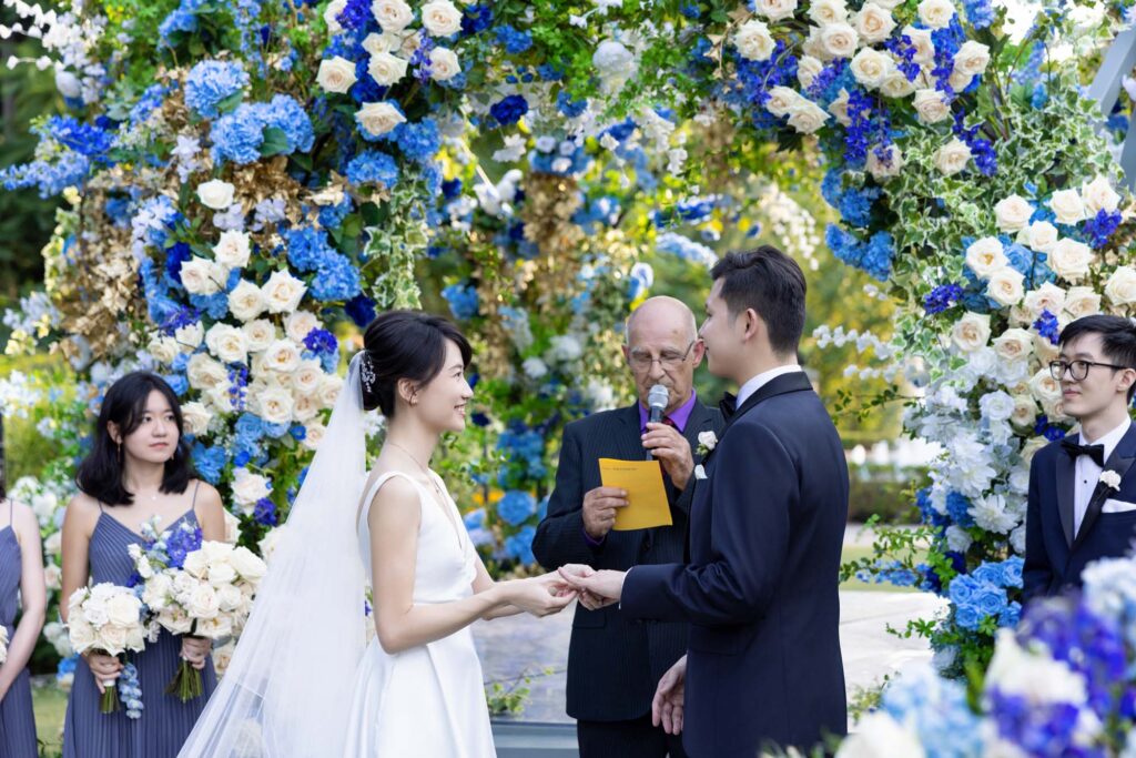 The wedding’s color palette was a dreamy combination of soft blues and purples, creating a romantic and elegant atmosphere. These colors were beautifully incorporated into the floral arrangements, table settings, and even the bridal party’s attire. The castle’s garden was transformed into a floral wonderland, with delicate blooms adding a touch of natural beauty to the historic venue. Casa Loma, with its grand architecture and lush gardens, was the perfect choice for Siyu and Alex’s wedding. The ceremony took place in the castle’s picturesque courtyard, surrounded by blooming flowers and the soft glow of natural light. As the sun set, the reception moved to a stunning transparent tent in the castle’s backyard, where the couple and their guests enjoyed an unforgettable evening under the stars. As night fell, the tent was illuminated by the warm glow of candlelight, creating a magical and intimate atmosphere. The reception was filled with heartfelt speeches from loved ones, each one bringing tears of joy and laughter. The combination of twinkling lights, soft music, and the castle’s historic charm made for a truly enchanting evening.