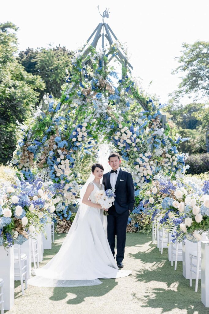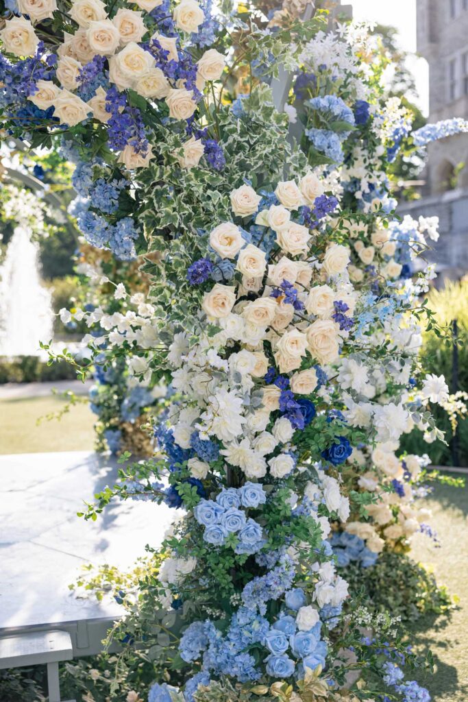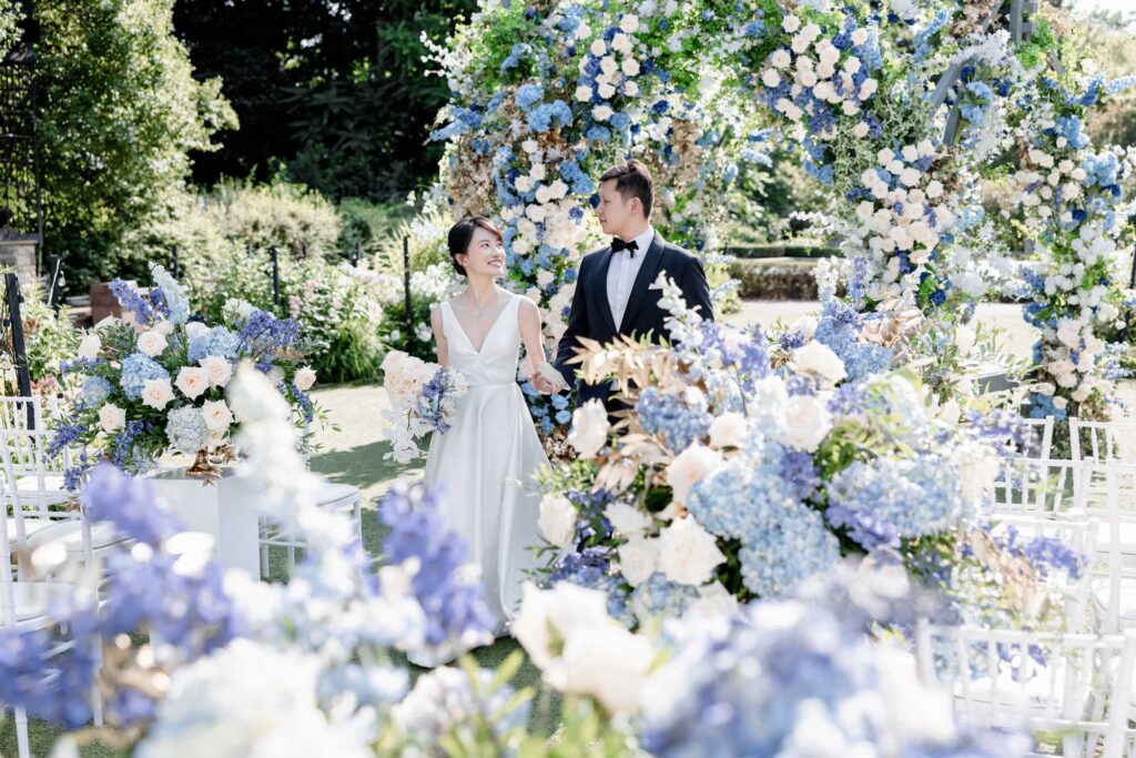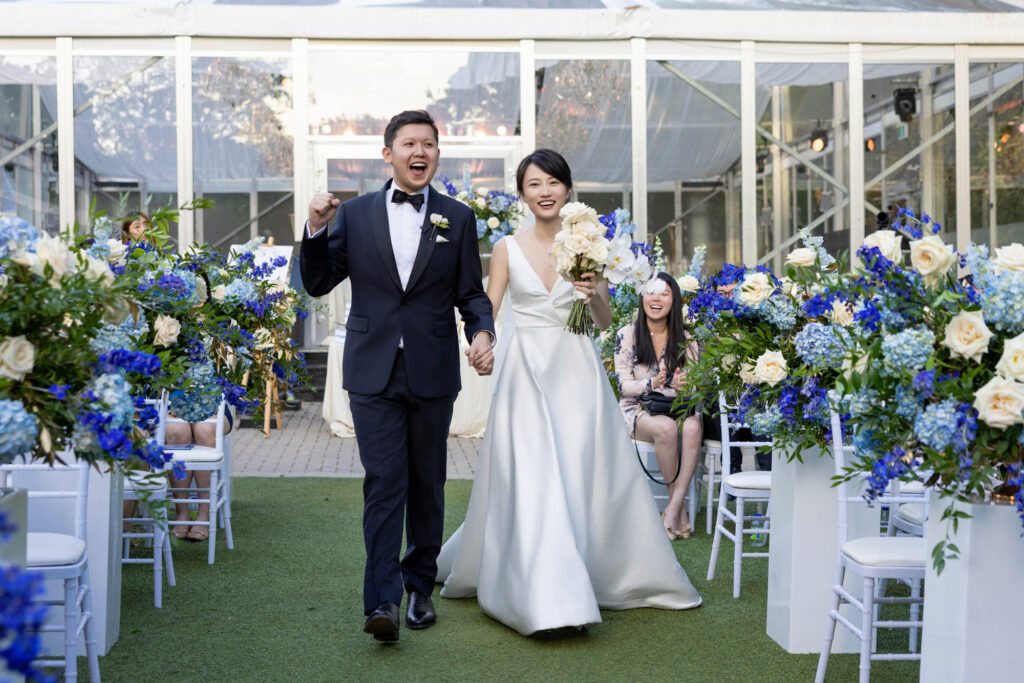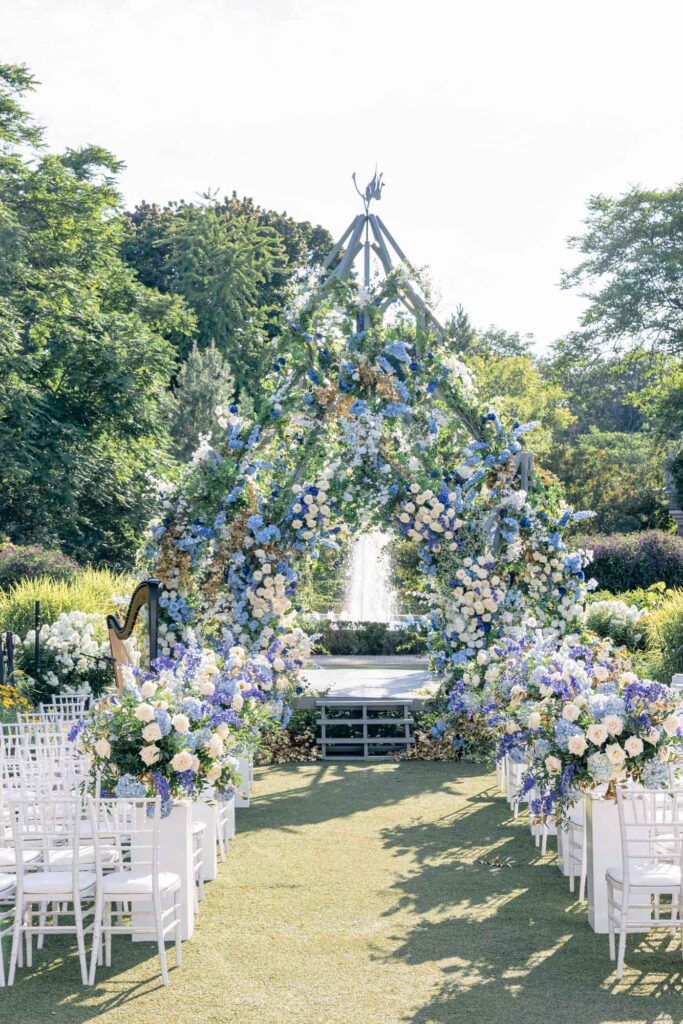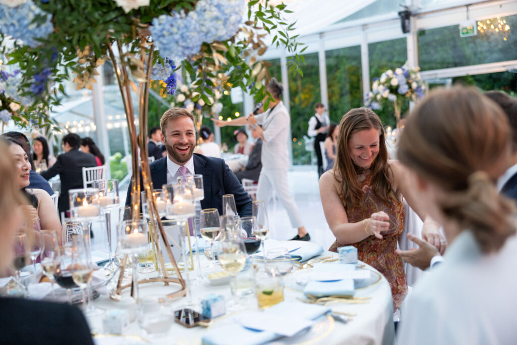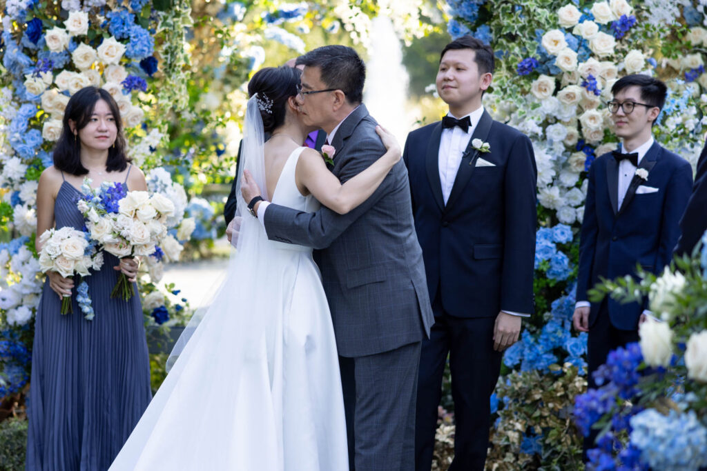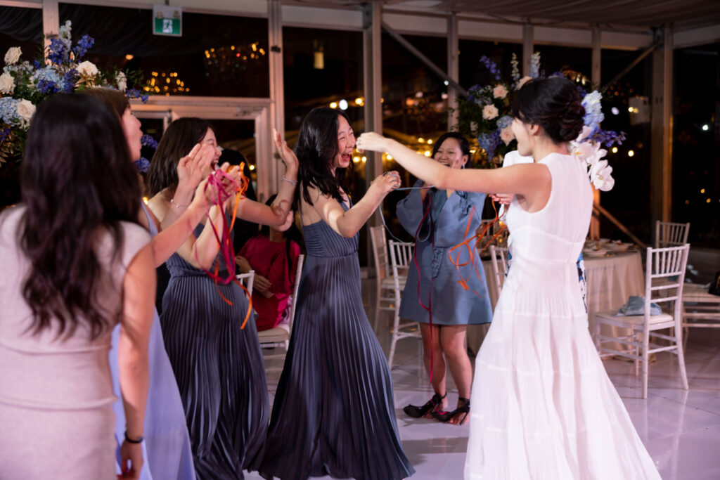 The wedding’s color palette was a dreamy combination of soft blues and purples, creating a romantic and elegant atmosphere. These colors were beautifully incorporated into the floral arrangements, table settings, and even the bridal party’s attire. The castle’s garden was transformed into a floral wonderland, with delicate blooms adding a touch of natural beauty to the historic venue. Casa Loma, with its grand architecture and lush gardens, was the perfect choice for Siyu and Alex’s wedding. The ceremony took place in the castle’s picturesque courtyard, surrounded by blooming flowers and the soft glow of natural light. As the sun set, the reception moved to a stunning transparent tent in the castle’s backyard, where the couple and their guests enjoyed an unforgettable evening under the stars. As night fell, the tent was illuminated by the warm glow of candlelight, creating a magical and intimate atmosphere. The reception was filled with heartfelt speeches from loved ones, each one bringing tears of joy and laughter. The combination of twinkling lights, soft music, and the castle’s historic charm made for a truly enchanting evening.