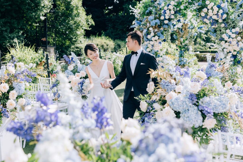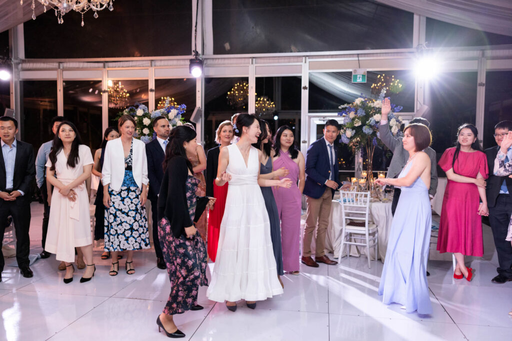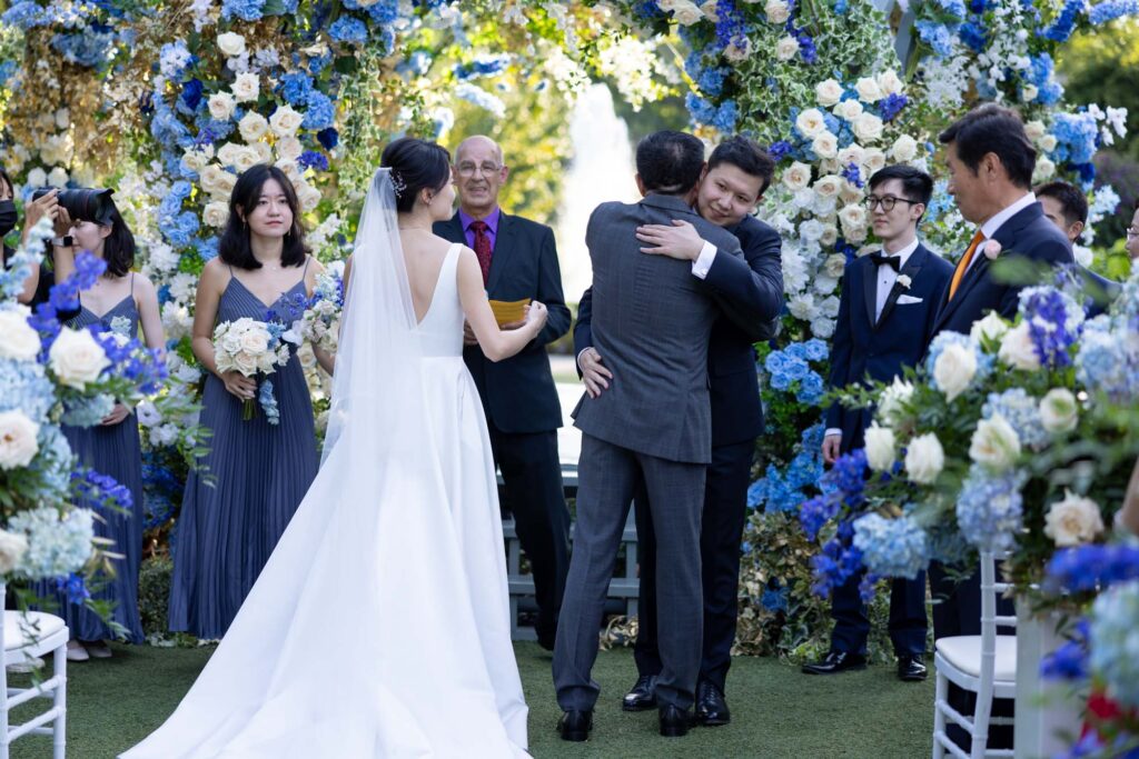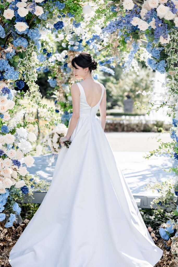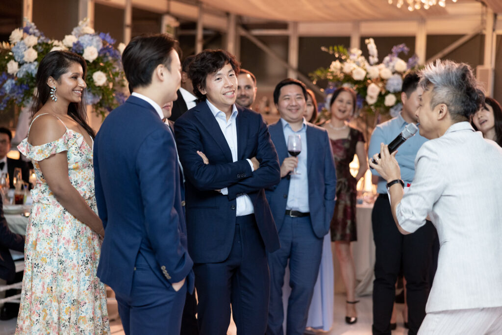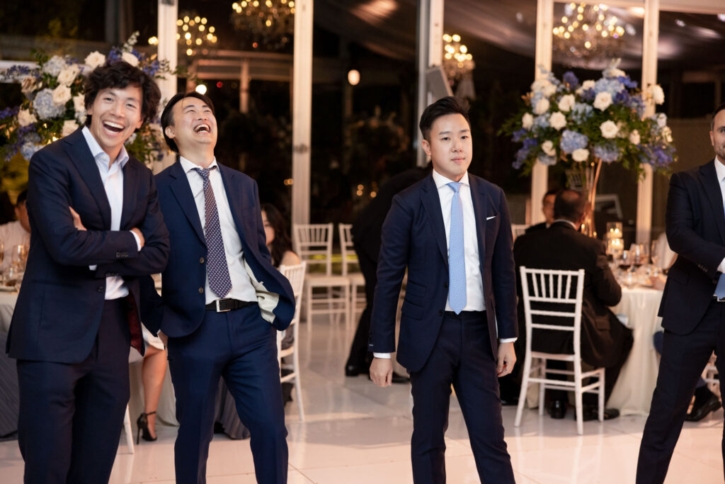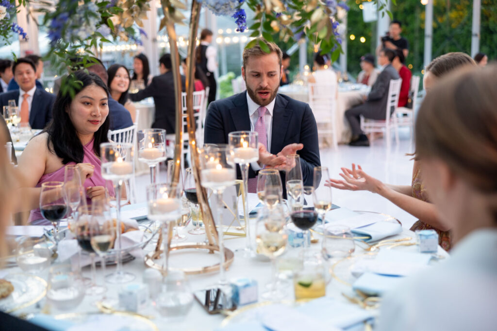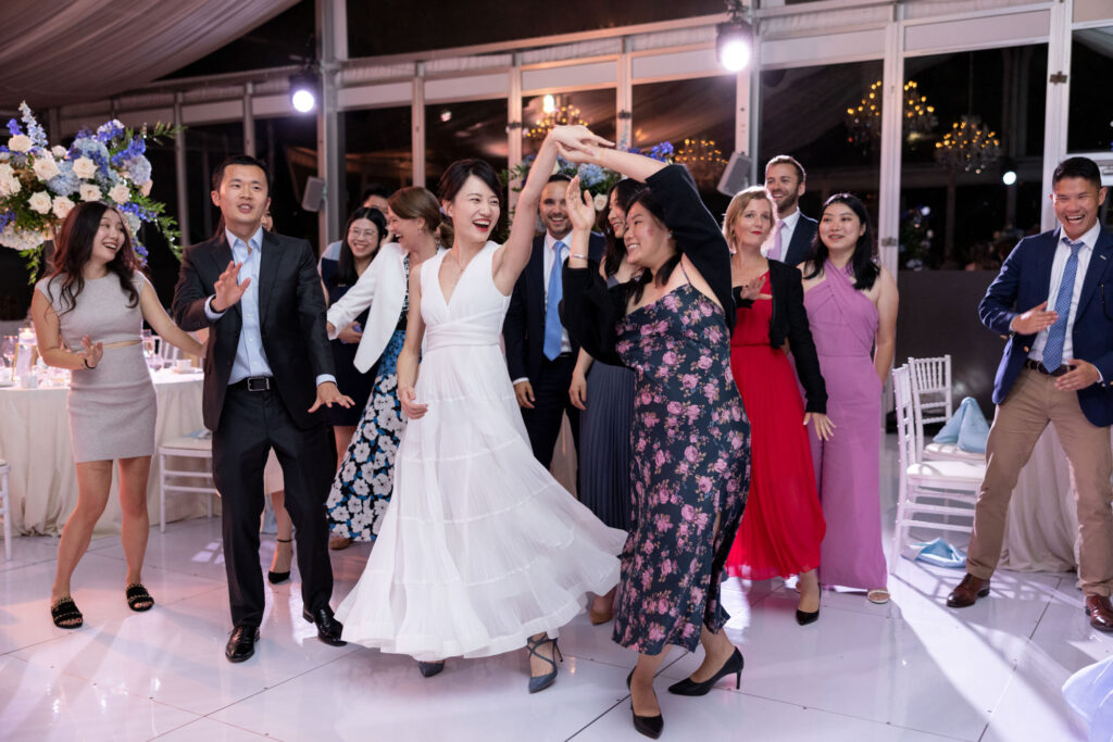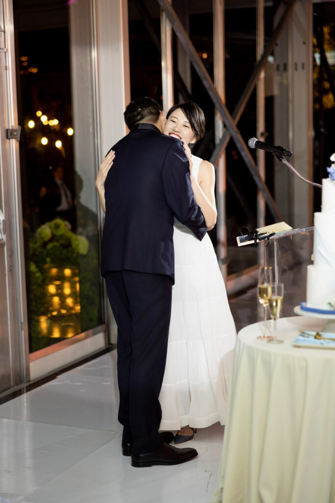 The wedding’s color palette was a dreamy combination of soft blues and purples, creating a romantic and elegant atmosphere. These colors were beautifully incorporated into the floral arrangements, table settings, and even the bridal party’s attire. The castle’s garden was transformed into a floral wonderland, with delicate blooms adding a touch of natural beauty to the historic venue. Casa Loma, with its grand architecture and lush gardens, was the perfect choice for Siyu and Alex’s wedding. The ceremony took place in the castle’s picturesque courtyard, surrounded by blooming flowers and the soft glow of natural light. As the sun set, the reception moved to a stunning transparent tent in the castle’s backyard, where the couple and their guests enjoyed an unforgettable evening under the stars. As night fell, the tent was illuminated by the warm glow of candlelight, creating a magical and intimate atmosphere. The reception was filled with heartfelt speeches from loved ones, each one bringing tears of joy and laughter. The combination of twinkling lights, soft music, and the castle’s historic charm made for a truly enchanting evening.