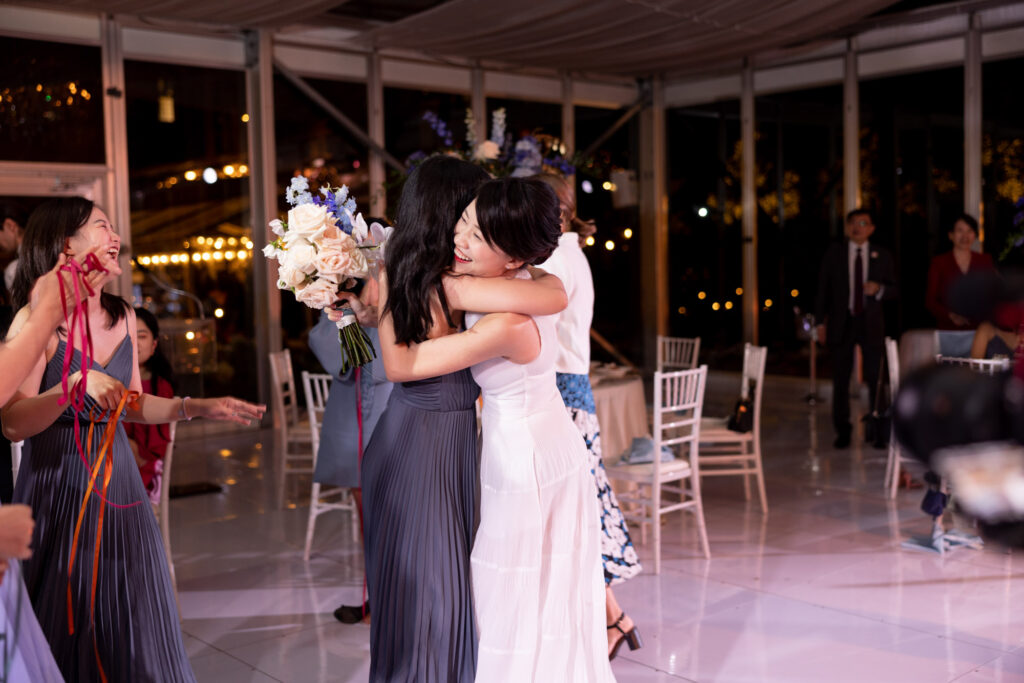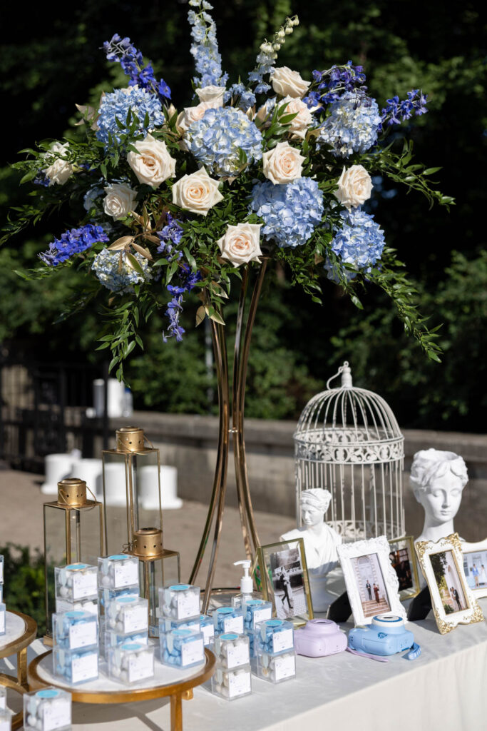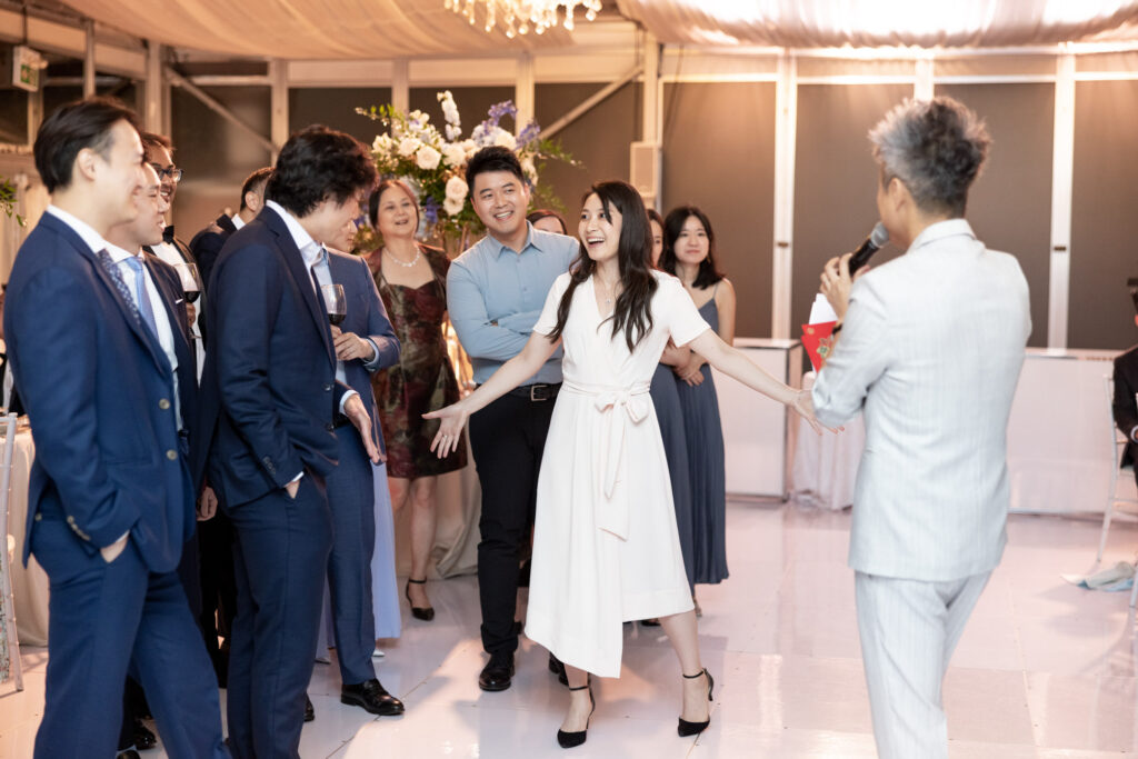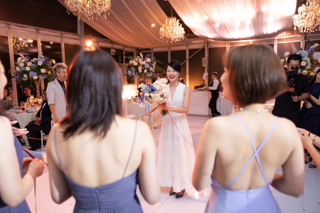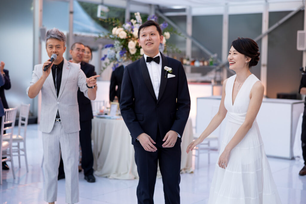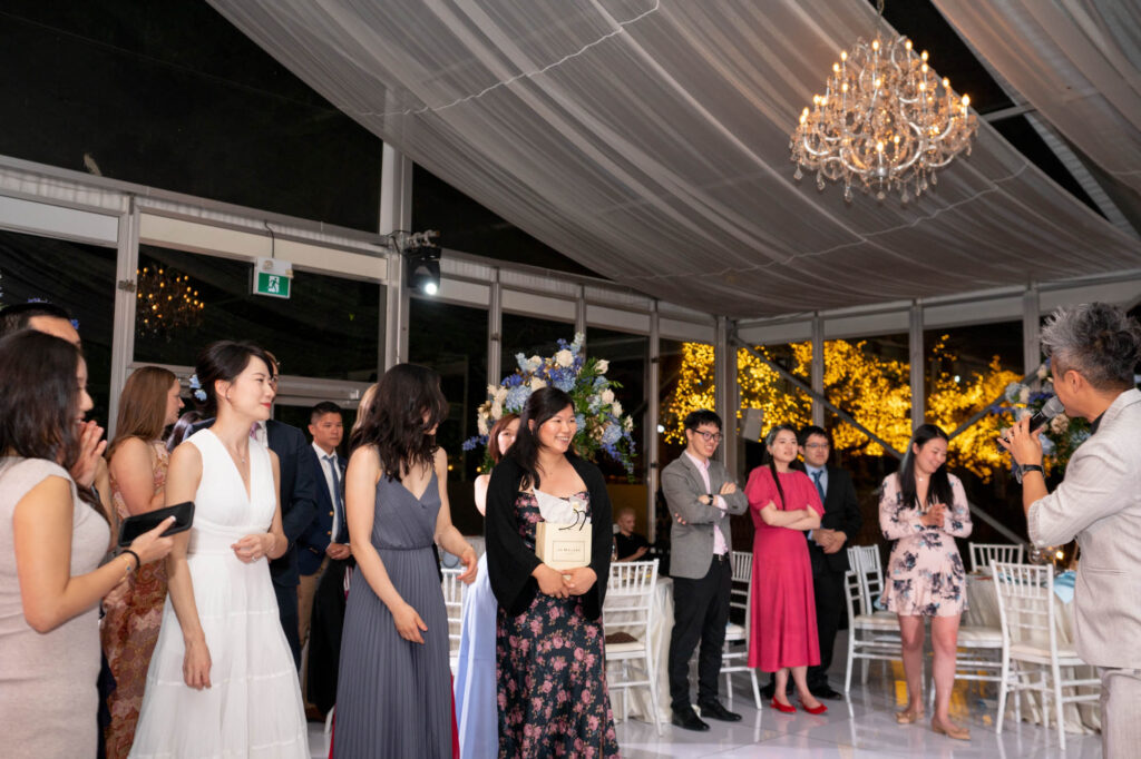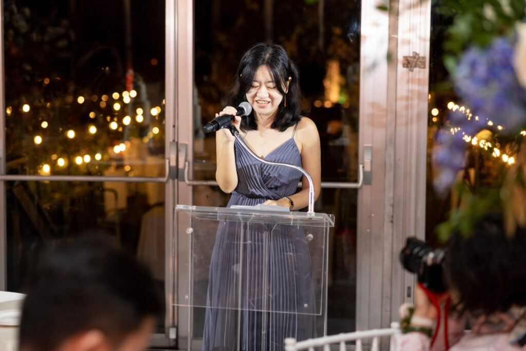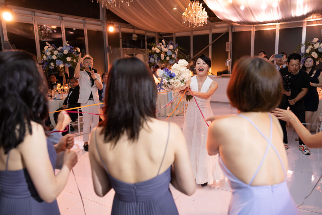 The wedding’s color palette was a dreamy combination of soft blues and purples, creating a romantic and elegant atmosphere. These colors were beautifully incorporated into the floral arrangements, table settings, and even the bridal party’s attire. The castle’s garden was transformed into a floral wonderland, with delicate blooms adding a touch of natural beauty to the historic venue. Casa Loma, with its grand architecture and lush gardens, was the perfect choice for Siyu and Alex’s wedding. The ceremony took place in the castle’s picturesque courtyard, surrounded by blooming flowers and the soft glow of natural light. As the sun set, the reception moved to a stunning transparent tent in the castle’s backyard, where the couple and their guests enjoyed an unforgettable evening under the stars. As night fell, the tent was illuminated by the warm glow of candlelight, creating a magical and intimate atmosphere. The reception was filled with heartfelt speeches from loved ones, each one bringing tears of joy and laughter. The combination of twinkling lights, soft music, and the castle’s historic charm made for a truly enchanting evening.