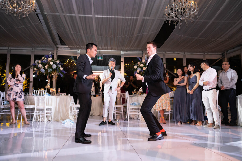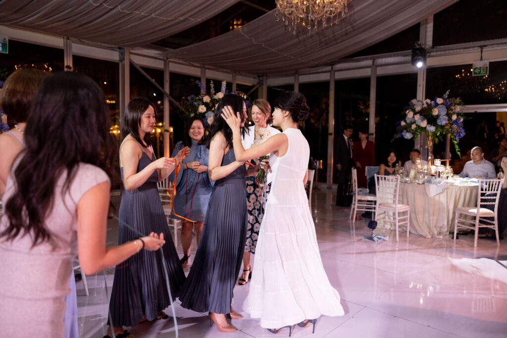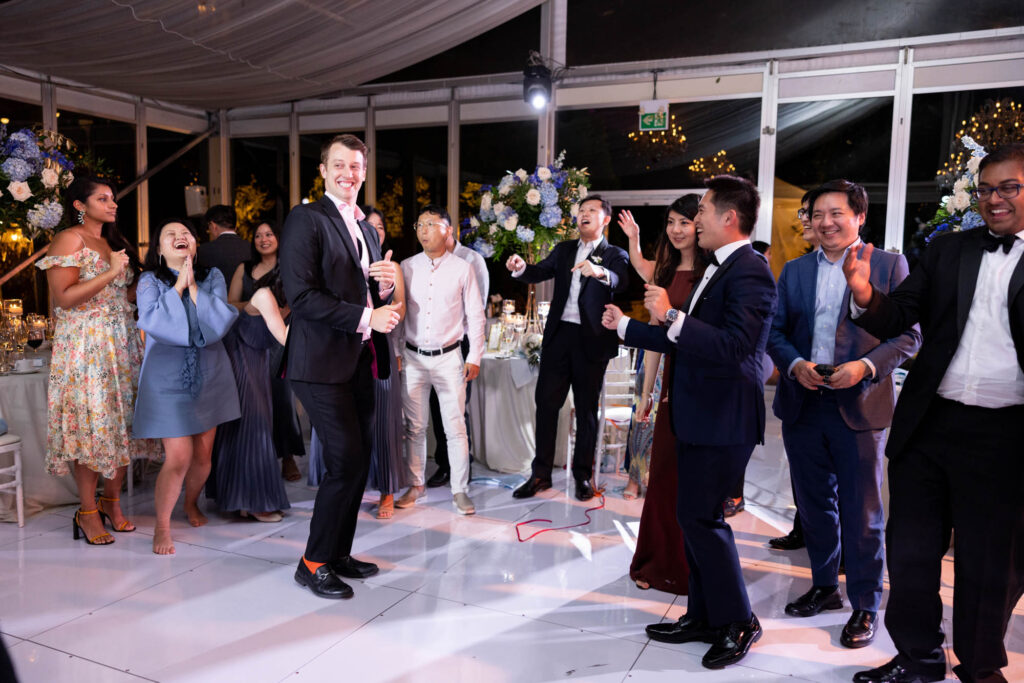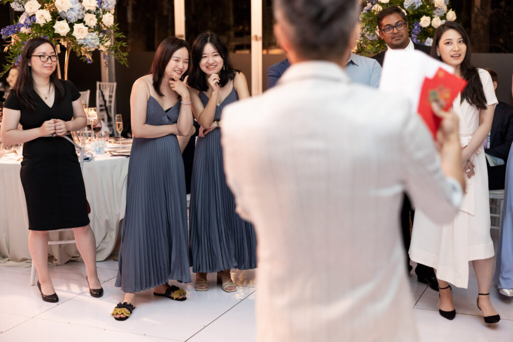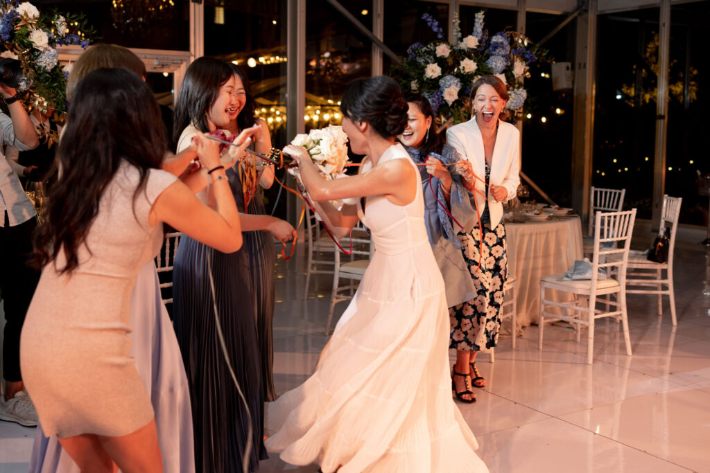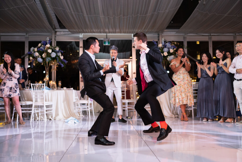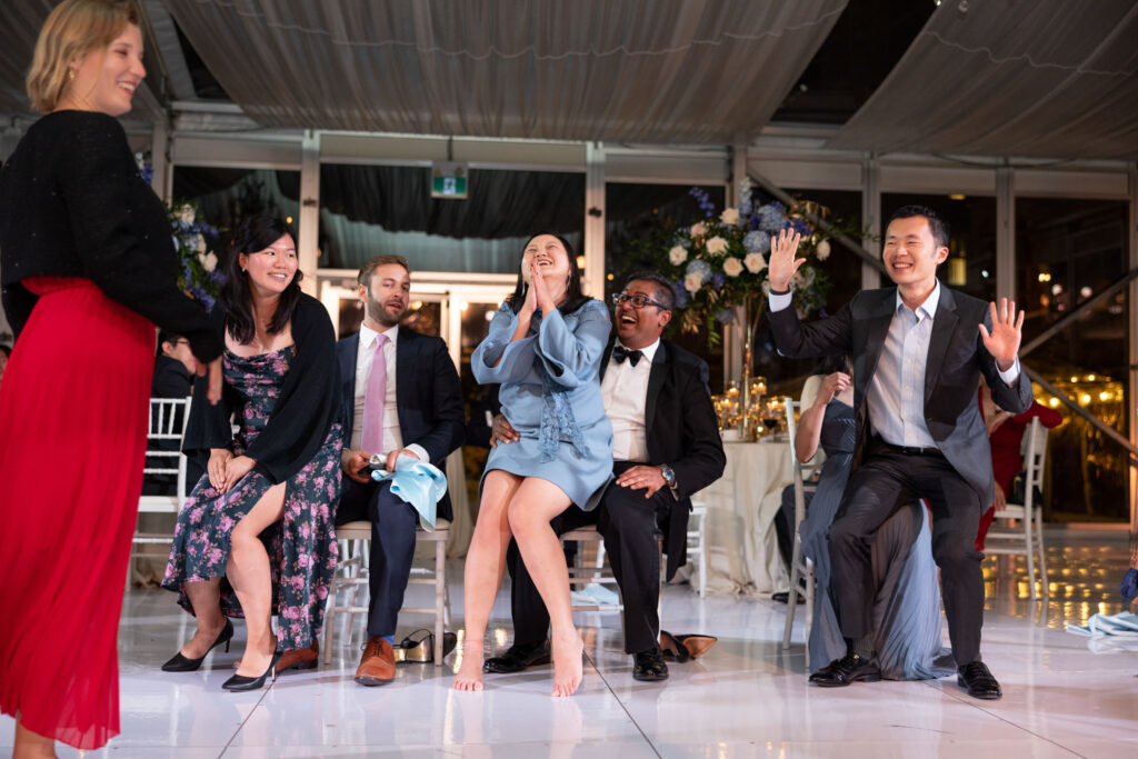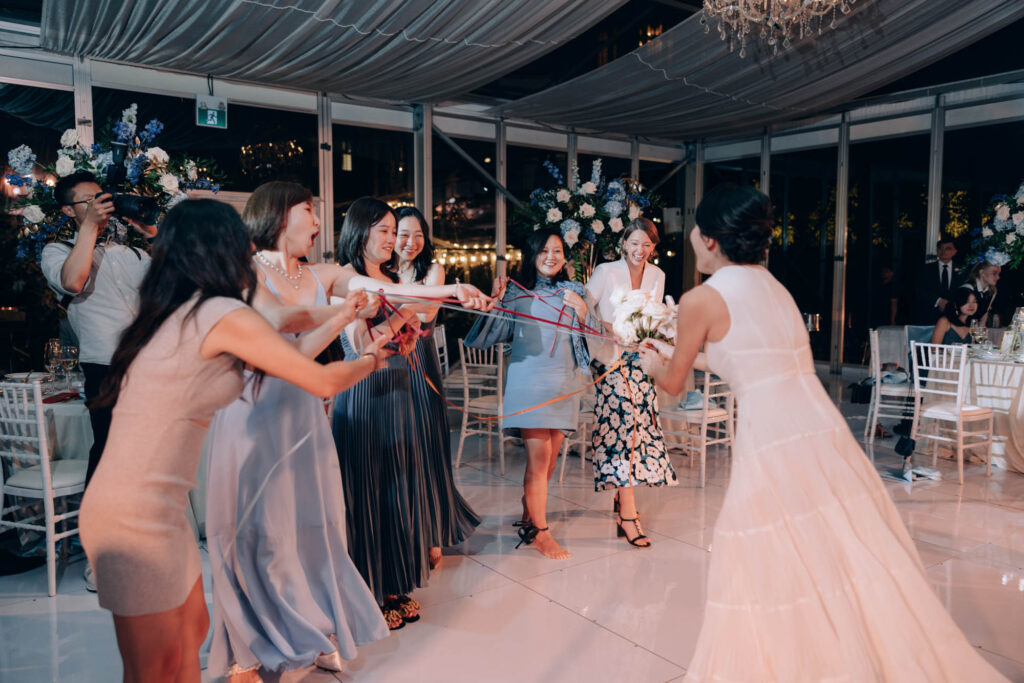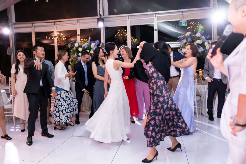 The wedding’s color palette was a dreamy combination of soft blues and purples, creating a romantic and elegant atmosphere. These colors were beautifully incorporated into the floral arrangements, table settings, and even the bridal party’s attire. The castle’s garden was transformed into a floral wonderland, with delicate blooms adding a touch of natural beauty to the historic venue. Casa Loma, with its grand architecture and lush gardens, was the perfect choice for Siyu and Alex’s wedding. The ceremony took place in the castle’s picturesque courtyard, surrounded by blooming flowers and the soft glow of natural light. As the sun set, the reception moved to a stunning transparent tent in the castle’s backyard, where the couple and their guests enjoyed an unforgettable evening under the stars. As night fell, the tent was illuminated by the warm glow of candlelight, creating a magical and intimate atmosphere. The reception was filled with heartfelt speeches from loved ones, each one bringing tears of joy and laughter. The combination of twinkling lights, soft music, and the castle’s historic charm made for a truly enchanting evening.